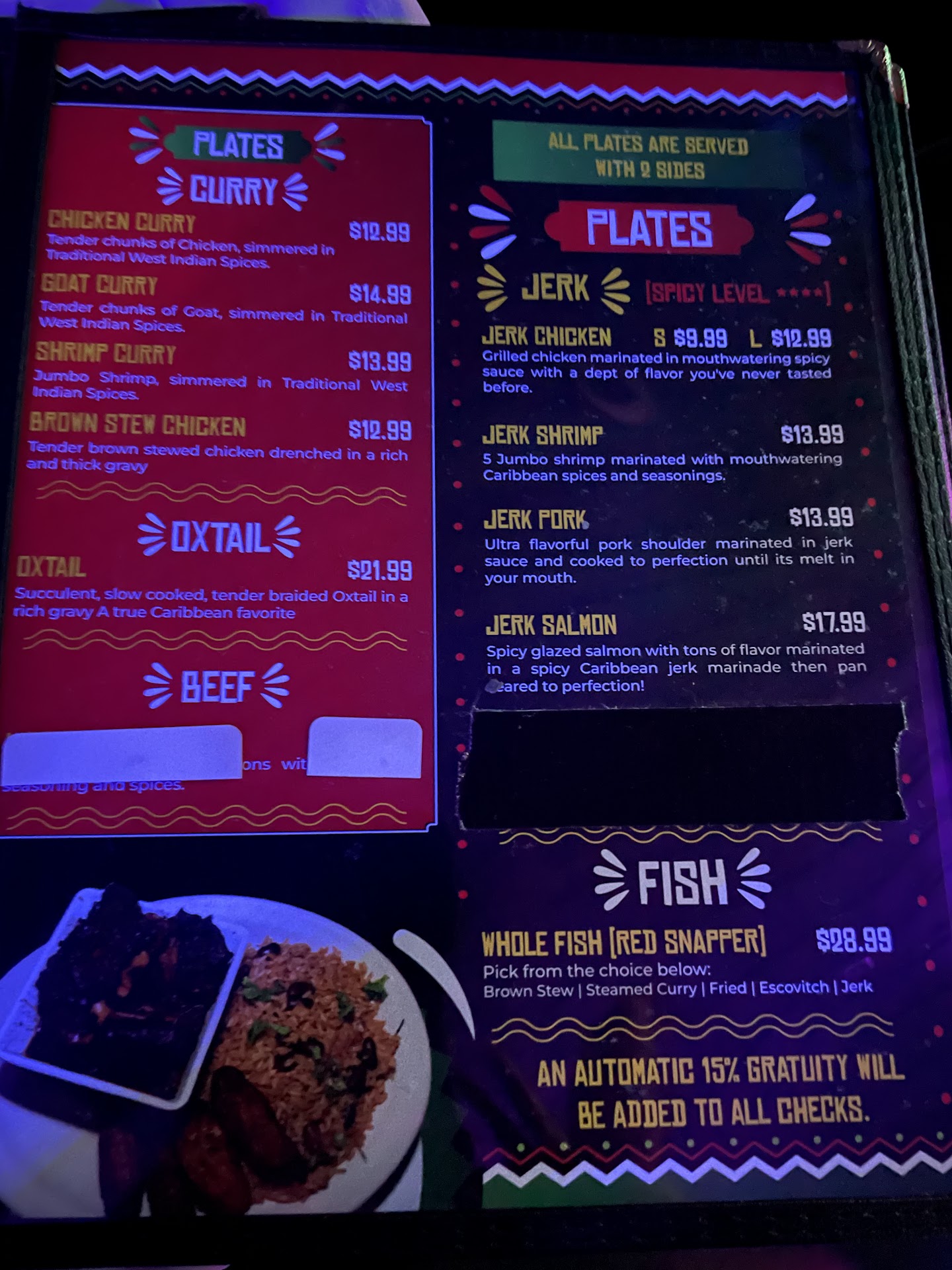 Read moreThis was the most horrible experience I have ever experienced with a dine in club, The party was reserved and only allowed to bring birthday cake Had to purchase triple priced drinks and overly priced food in house. Caribbean where? Felt like a house/EDM club, lounge whatever. we reserved this dining hall for birthday. Overcharges Wine and Food Food was nasty, salty other food was bland. The most insulting thing was they had a mirage of DJ's who refused to play the music that we (paying party)preferred it made our experience even worse. Run don't walk from this place by the way the food looks nothing like the posted photos; this must be old photos people have posted from the past. Refund is needed