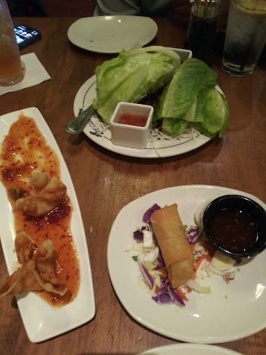 Read moreI took my sister and nephew here because they've never had P.F. Chang's before, and when I lived in Nashville I ate there a lot, but never found one in Atlanta, but now since I relocated to Arlington, TX I find it again which I'm happy about. It took almost an hour before we were seated, which she told us about 30 minutes. I actually had time to shop because they are located in a nice shopping plaza. The waiter I thought did a great job and I tip him handsomely, but my sister thought his service was just sub par. I ordered lettuce wraps, crab wontons, and my sister ordered egg rolls for an appetizers. For the meal I ordered Chang's spicy chicken with brown rice. The chicken was okay and the brown rice was very sticky but the taste was okay I guess. My sister didn't enjoy her meal at all, and said she wouldn't eat there again. She ordered noodles and salmon and halfway through her salmon it was very runny as if it wasn't done so she didn't eat the rest, but she tried to eat some of the full bed of spinach it came on because she didn't want to waste money. My nephew loved the lettuce wraps and the crab wontons and he said his meal was okay, but he wouldn't really eat there again because the taste of the meal was nothing special. To him it was something you could stop and get to go at a Chinese restaurant. My experience was nothing like it was when I lived in Nashville, TN over eight years ago. The food at the P.F. Chang's in Nashville was so good I ate there often and even my job at the time (Vanderbilt) treated us there often. I loved it so I couldn't wait to take my sister and nephew since they'd never eaten there before, but overall the food just didn't have that quality taste I use to love, but I did enjoy the waiters service. I though he did a great job making sure our experience was a good one...thanks Ethan. But yeah...I don't see myself making a trip back to P.F. Chang's in the...
