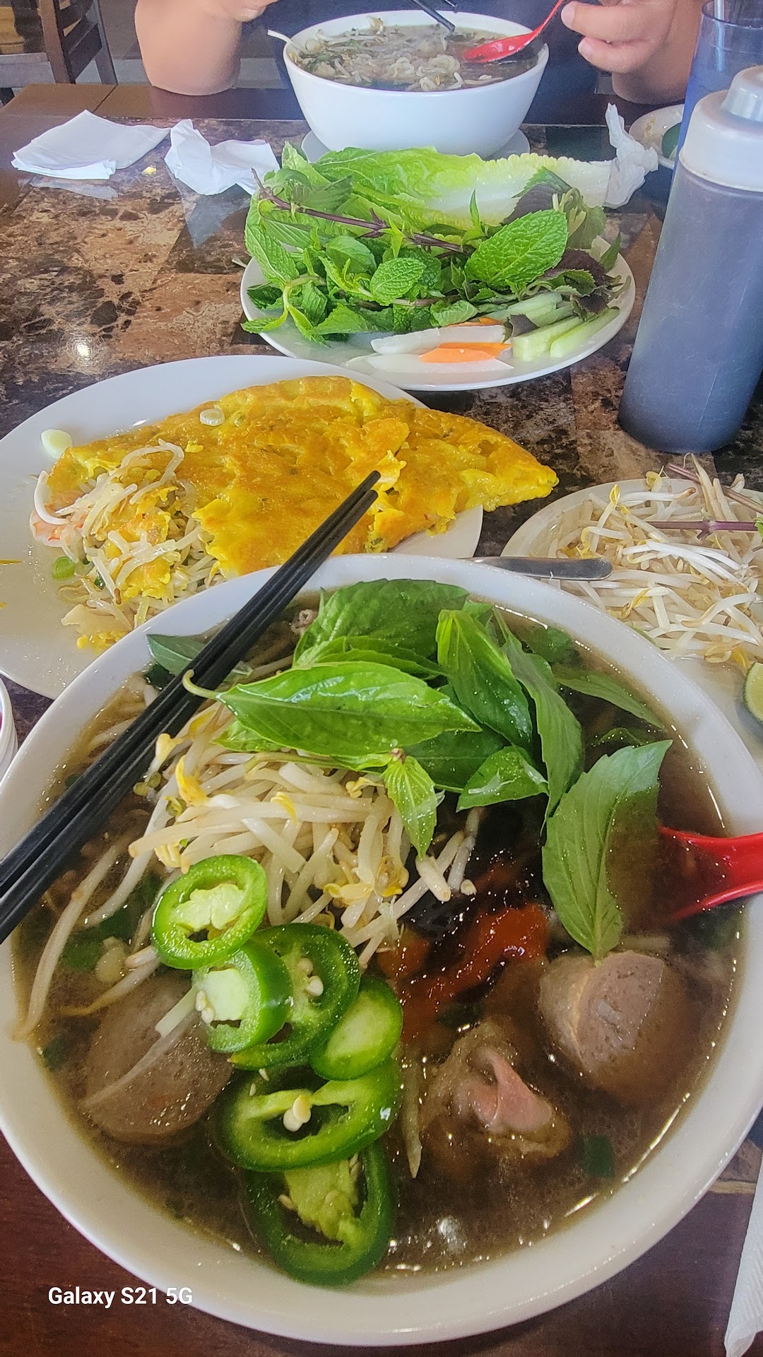 The food came out fairly quickly, which I like. I've made pho and banh xeo at home before, and the amount of time to put things together should not take more than 5-10 minutes, especially if there were no customers (given that the broth was already prepared a day in advance).
