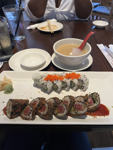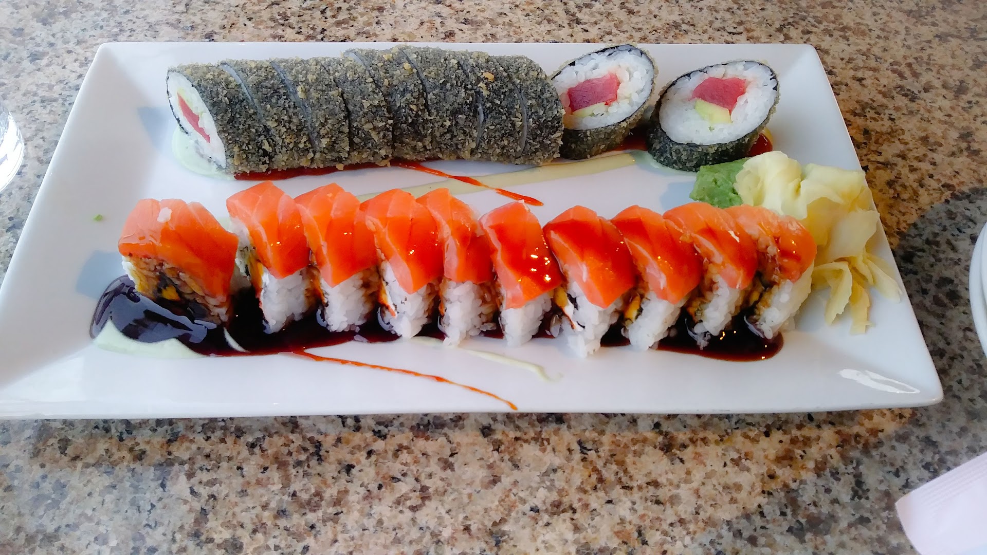 Read moreSo after reading the reviews my girlfriend and I decided to check this place out. We thought the restaurant looked very nice and the atmosphere was spot on. The service was decent the girl was just not a people person so there were a few awkward moments. When I asked what they had to drink the server suggested the mango tea($2.25), I got it and it tasted like watered down tea with a very slight hint of mango, I put 2 sweeteners in it and it was a little better. The presentation of the food was great, however it did not taste nearly as good as it looked. We were weary when we went in so we started with a california roll($5.50 8 pieces), it had small portions of ingredients and the avocado was mushy which happened to be the one ingredient they included a lot of. When we poured our soy sauce it had a dead fruit fly in it(they keep soy sauce in ceramic tea pot with a large spout, easy access for bugs). They have a bar open to the outside patio so bugs can fly in, which there was another fruit fly messing with us while we were eating. We decided to try one more thing so we tried the grilled chicken spring rolls($8.95 4 half spring rolls). The presentation was great and the first couple of bites were okay, I'm not sure wether we got tired of it or if the good ingredients were only on one side of the spring roll(because it was cut in half). Well the check was a whopping $18.04 and all we had was 2 waters(free), a mango tea, one california roll, and a spring roll appetizer. For the food quality the price was outrageous and by the time we were finished I could see why there was only one other couple in the...