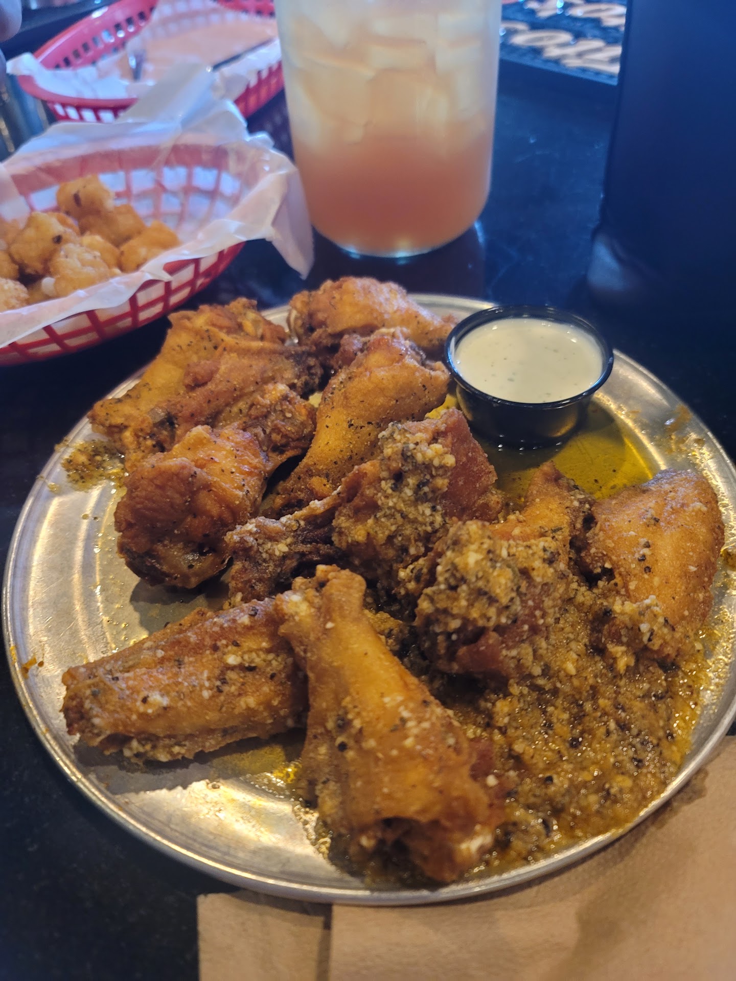 Read moreThe wings: AMAZING as always. Tonight, the service and overall front of house was absolutely terrible. It took 20 minutes for our server to come to our table. She took the order for an 8-top behind us, then straight over to take a 5-top's order, then over to us. You can imagine how the rest of the night went. After we ordered, it took 15 minutes just to get our Cokes. The food came out correctly, and it was delicious. Our drinks were empty, and asked our server for refills. She grabbed our cups, walked away with them and didn't come back with them. There were problems with the food at her 8-top and basically every other table around including us were completely ignored. A kitchen manager came to the 8-top, but it didn't occur to him to check on the other guests, or at least direct someone else to. When you're looking around waiting for things constantly, and see several employees chatting and hanging around the point of sales and kitchen area, it's just plain aggravating. How does no one notice we have no drinks for 30 plus minutes? Then, we waited 30 more minutes after we finished eating for the check. My husband had to get up and ask the kitchen manager that was standing behind the host stand for the check. The 5-top was doing the same thing, walking around trying to pay their bill. He asked a different server to bring us our check, and she ran our credit card at the take-out point of sales behind the host stand. She was gracious and apologized to us. But three hours just to eat wings and tater tots, from 9pm-midnight. There was a supervisor of some sort, wearing a hat, that was getting drink refills and bringing checks to some tables around us. Our server went missing for long periods of time. We didnt want to complain, just wished the supervisor or even another server would've stepped up to at least bring our basic things like drinks and the check. My husband went to the restroom at one point, and there was an employee sitting on the sink smoking his vape. I'm sure all of this is unacceptable to the standards of the company. You have a great product, but you definitely need someone paying...