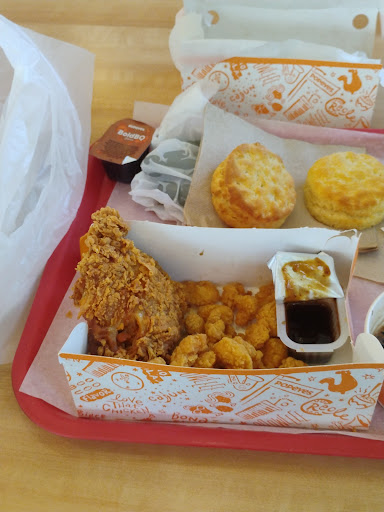 2nd visit i went with 5 people. Cashier kept sayin" were out " everything on the menu i asked for. Cashier was VERY unknowable. Got our food after waiting very long time. Some of the chicken was spicy some wasn't but it was all mixed. The kids got spicy since non of it was specified. Some were cold. We got 2 orders of fries and only got 1. When we told the cashier she said "the order of fries was bigger nd put in 1 trey, " meaning we were soposta share. (WTF?!) The dr pepper, coke and other drink were out. I told the cashier and she said we know, no one knows how to change it. Tea tasted like that tea urn had never seen a sponge and soap. They had no sauces. I was only given 2 pakets of ketchup for a large order, when asked for more i got attitude. Like it was an inconvenience to reach right under the counter were u were 3 seconds ago. No napkins. No biscuits. No high chairs. No clean tables. Trash overflowing. Restroom was horrid....