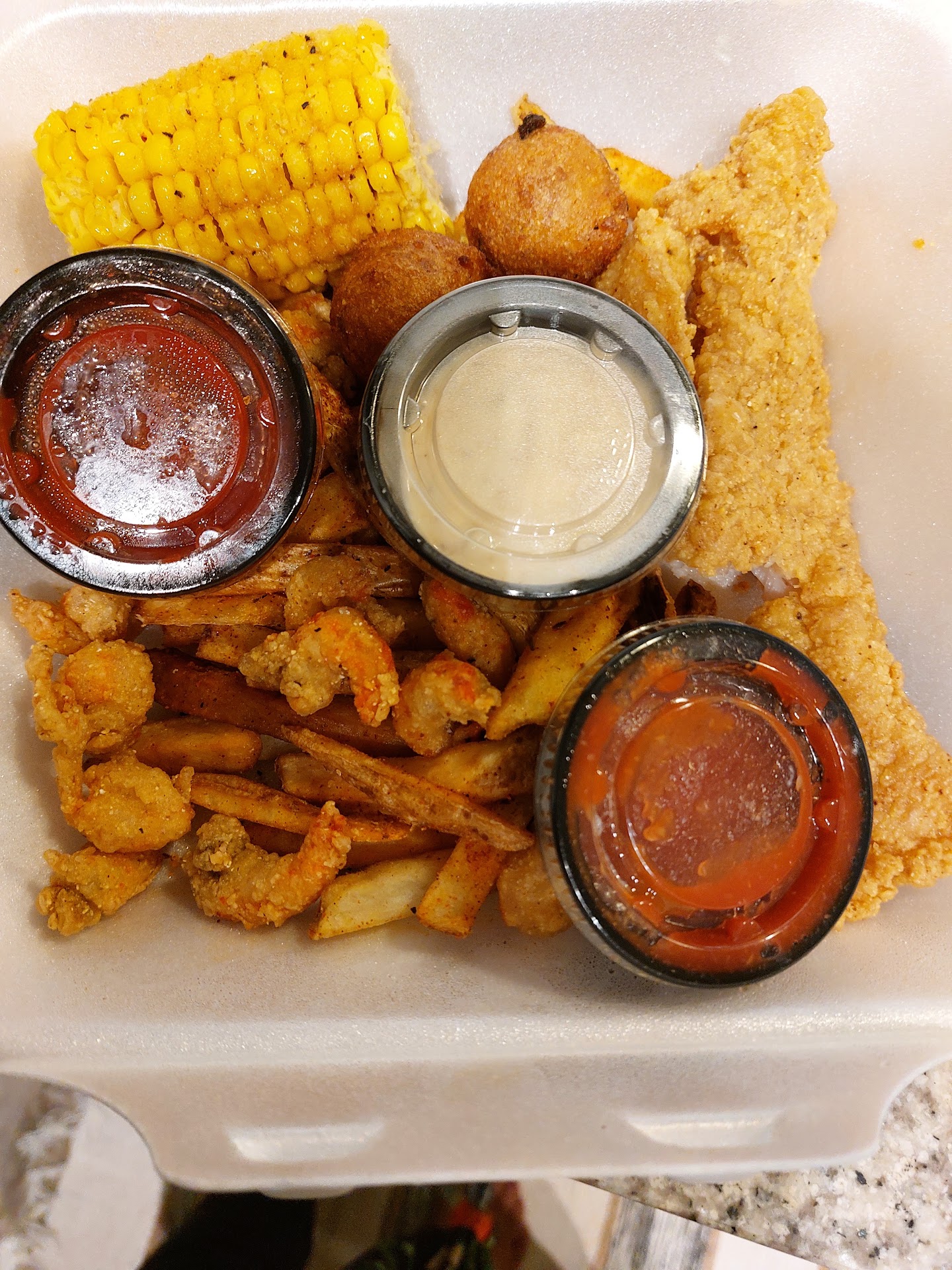 Read moreI’ve been going to this location my entire life, but I’ve decided to never go again. Firstly, my waitress was clueless about the specials for the day which was the Fish and Shrimp platter for $10. She told us it came with 2 fish and 3 shrimps, so we ordered 2 meals. When the food came it came with only 2 shrimps and a small handful of fries, so I informed her that the meals were lacking shrimp, so she took my plate away, I told her to leave it, and just get the manager. Manager comes, I tell him the meal is lacking shrimp, he tells me, “we don’t take meals back (which is lie), so you can pay $3.99 per shrimp or pay the regular price and I’ll bring you more shrimp and fries.” So I decided to pay the $17 for the full meal. Once it was time to the pay, the manager charged both me and my mother full price. Puzzled, my mother spoke to the waitress and she informed us that even though my mother didn’t order more food, the manager instructed her to uncharge her as well.
