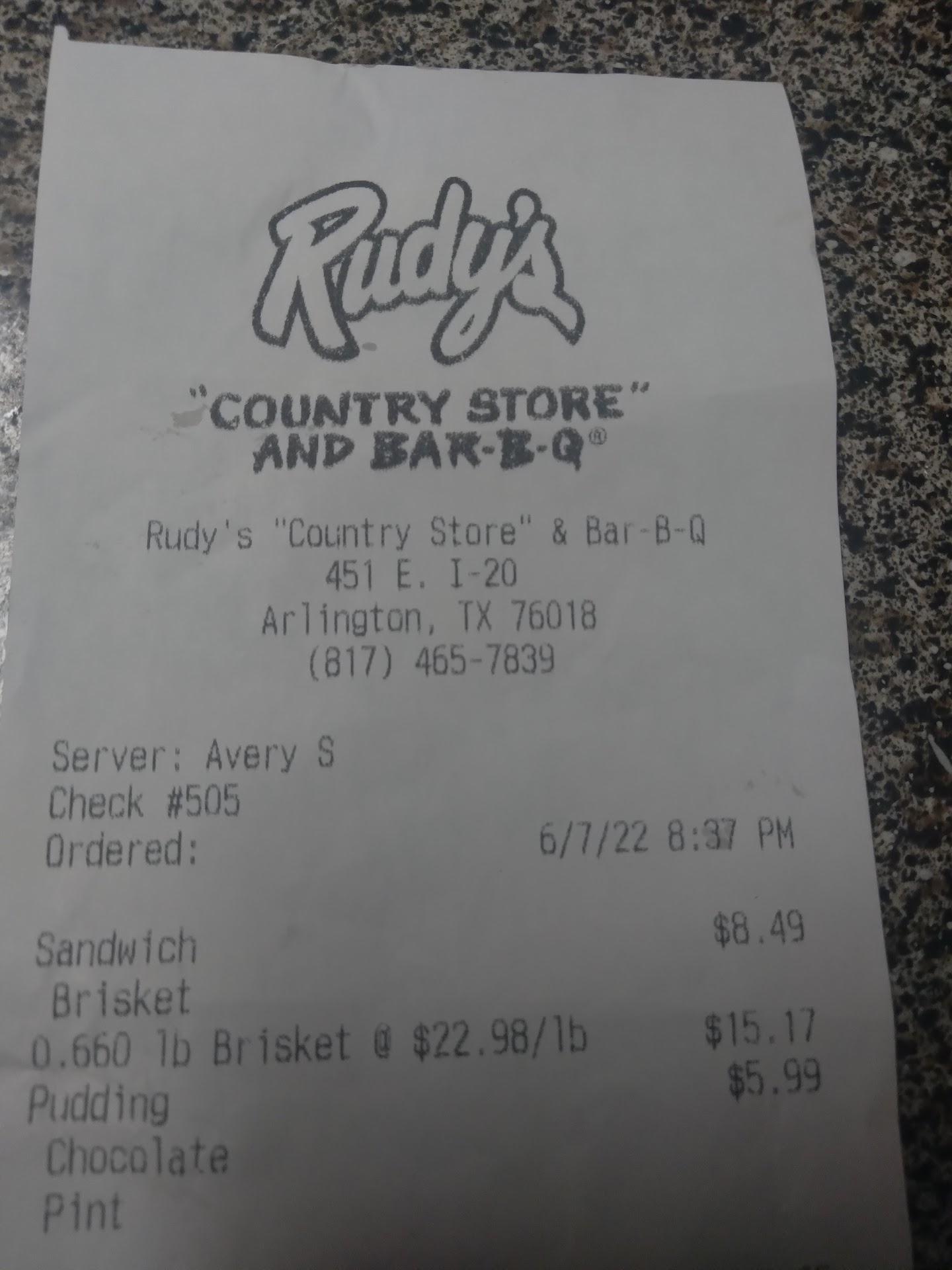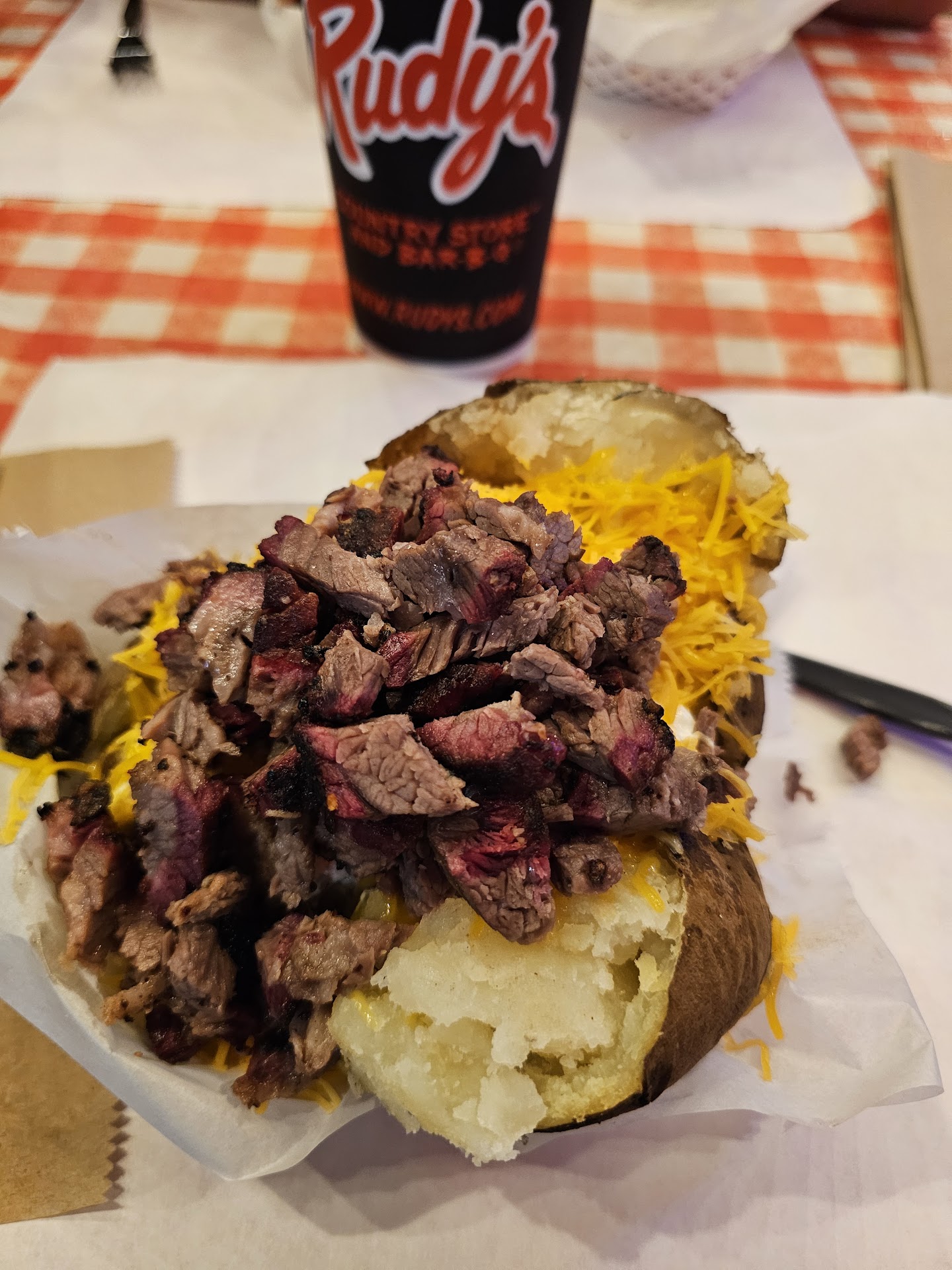 Read moreI really cannot say enough good things about this place. Always had seen it, but it wasn't until about 2 years ago that I finally tried it, and I can't believe I went so long without some Rudy's bbq!! Service here is always above and beyond ... from being greeted upon entrance and being asked if you're ok while seated and eating -- the customer service is top notch. Food is A M A Z I N G. You definitely get your money's worth here! People talk about the various bbq places in Texas and the well known ones in the Metroplex, but I have never heard people talk about Rudy's! Why?!? Put their food in your mouth and Rudy's name will be dripping out the corner of every Metroplex person's mouth!! I was at H* E* a few months back (wasn't my first time there) and I wanted to slap myself while there because of not just going to Rudy's! Pictures included are of Rudy's loaded baked potatoe with brisket and their sausage sandwich. They load it up here, and they load it up good! H* E* was a joke in comparison to Rudy's, and I know better now! Atmosphere here is always laid back and depending on the time of day, it can definitely get busy, but that doesn't take away from the good service and food you get here! They have breakfast tacos and they are mouth watering, delicious! Their tacos are small, but 2 of those beauties is usually enough because they are loaded up! Moist brisket, pork loin, and turkey here are pretty amazing, but honestly, what ever you get, you will not be...