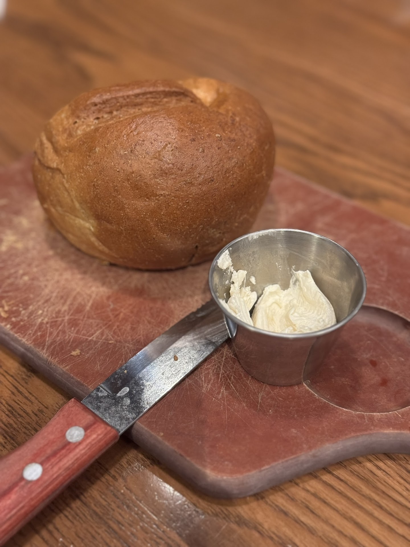 We got some fresh bread with honey butter per standard. A welcome nibble while you wait for your order.