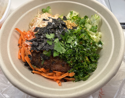 Delicious food, friendly and efficient service, cute vibes, and super convenient location...what more could you ask for in a fast-casual restaurant? I've been hearing rave reviews for SeoulSpice's other locations for a solid year now, so I was overjoyed to hear that they were opening up a new store in Rosslyn!! I came here with a couple of friends after work on a Monday evening, and...wow...it definitely lived up to the hype! Of course, I'm a little biased since Korean food is my favorite cuisine, but even my friends who aren't as obsessed with kimchi fell in love with SeoulSpice's upbeat energy, cute decor, and diversity of delicious options. One of my friends tried out their japchae noodles with spicy pork, and the other tested out their white rice bowl with bulgogi...both had rave reviews for their meet and both bases, and their sriracha was wonderfully creamy and flavorful. Personally, I ordered their salad bowl with tofu and added literally every single vegetable topping they had. Their tofu was delicious and incredibly flavorful, especially with their super refreshing and tangy ginger-carrot dressing. Each of their toppings were wonderfully crisp and fresh, although I do wish that their kimchi was a bit more pungent. My one major complaint was with the base of the salad; it's described as a kale and iceberg lettuce mix, but it was honestly about 90% lettuce with a sprinkling of kale. I find iceberg lettuce a bit watery, and it wilts easily under the warm tofu and the dressing, so it really doesn't hold up well. I also don't think that the flavor of iceberg lettuce goes particularly well with their other toppings, so I would've preferred a fully kale base. I did appreciate that they had purple rice, though, so I might come back sometime for a rice bowl!