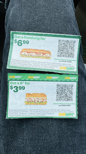 Read moreI'm extremely disappointed with my recent visit to Subway at this location.I went to their shop with valid Subway coupons, which I had attached photos of for clarity. However, upon presenting the coupons, I was informed by the staff that they were unable to accept them because the owner supposedly doesn't allow food to be sold using coupons.