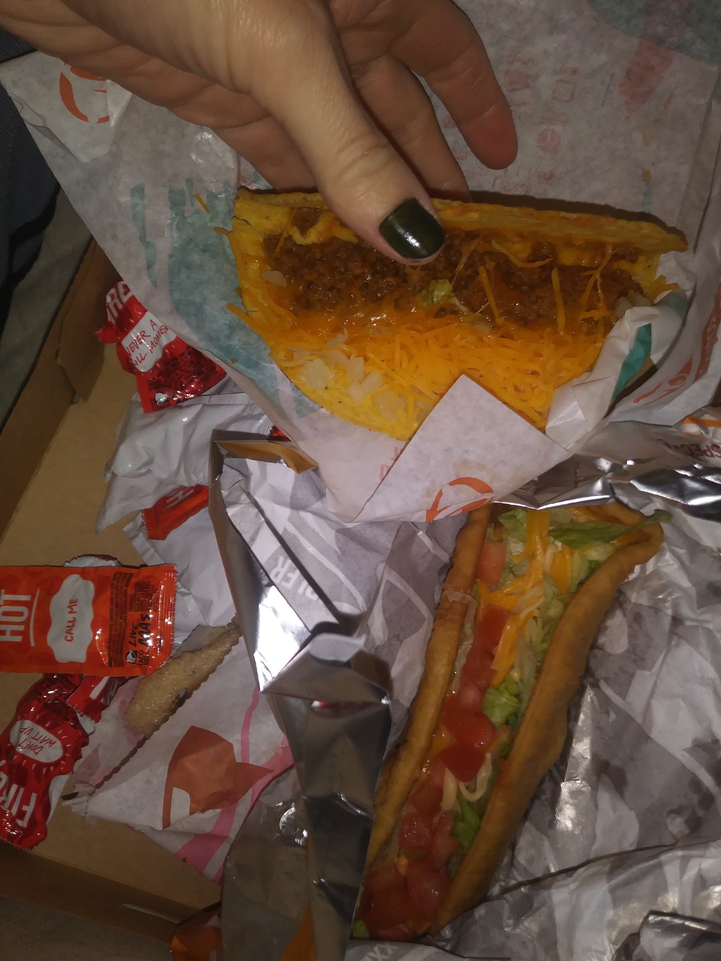Read moreTook my 3 young kids here and ordered through the app for 2 of them. Got it and took it to Panda Express where I got food for me and the 3rd, and we all ate inside there. Realized when taking everything out of Taco Bell's bag that we were missing 2 out of 3 of my 4 year old's items. Decided to just wait until after we ate what we had before loading them all back up in the car and would get the missing items on the way home. Got back to Taco Bell drive thru with my receipt and the manager asked if I had my bag, even though I already had my receipt. Showed her the bag and she asked if she could see it. I told her it's got leftover Panda Express in it now, and she said "Oh, you didn't realize for an hour that you were missing the food?" Very frustrating, especially given the amount of times the chain has forgot part of our order. Im usually ordering for 6, so it's pretty difficult to double check what they give me every time, and usually I don't realize until I get home. For them to make a mistake and suggest I'm doing something shady is mildy...