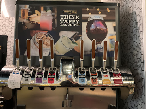 I will start off with our biscuit! It was actually all it’s cracked up to be. Ours was the Pumpkin Pie French Toast biscuit for $7. I shared it with my kiddo but I really should have gotten us each our own, it was scrumptious! The sodas on tap were old fashion flavors, we picked two flavors that sounded the best and tasted! We loved them!