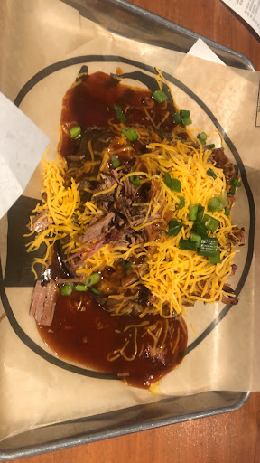 When we got our food, oh boy was that potato loaded. It was so loaded you couldn't even see the potato. But that proportion was just right--I hate whenever I finish my toppings and all I got is potato left. No, they give you enough so you can have a topping with every bite. The barbecue that they use on top is sweet--kinda reminds me of Spring Creek barbecue. It was some damn good potato. Every hearty, definitely gets you full.