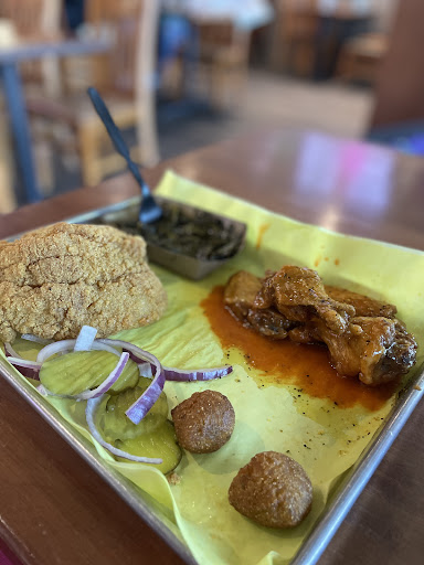 Read moreCame here because I was craving wings and was told that TJ's has "the best wings in Arlington". Discovered that TJ's catfish and wings combined with a barbecue joint called MJ's barbecue so now they serve both. Even before we got to the entrance, we could smell the barbecue from the outside. It smelled so appealing. When we got inside, we were greeted by friendly staff. We ordered the 10 piece wings, a side of cornbread, a side of fried okras, and the internet infamous loaded potato with barbecue brisket and cheese.