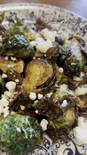 We ordered a variety of dishes which were so good and full of flavor. Started out with the âbiscuits for a causeâ and Brussels sprouts. The biscuits were warm and melted in your mouth. Twin B really liked the blueberry jam they were served with. The crispy Brussels were really good and the red pepper & almond romesco complemented them nicely.