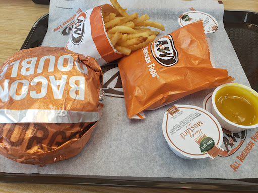 Took a long time to get our meals via the drive thru. I don't know why, because there was only one other customer at the time and he was eating inside. We ordered 2 drinks, but received 1 straw. I ordered ketchup and onion. They forgot the onion, and the burger was tasteless, but the bun was very good. We had bought 2 glass mugs while we were there, because it had been decades since I had A&W. They had us pull up because another car came through. So, when they did bring out the food, they forgot to bring the mugs. They eventually brought out 2 dirty mugs, but the worst part of the whole deal is the logo they decided to use on the mugs was I don't even remember what it said. I assumed the mugs would have A&W prominently displayed. I'm going to give the mug to somebody I don't like, for Christmas. Nothing tasted like before and it didn't even taste good. Root beer was too diluted. Girlfriend liked the root beer float. Hotdog bites were way too expensive at $4.80 something for 10. Apparently, we were supposed to receive sauce with the hotdog bites, but we werent told so. It was on the receipt as "Sauce: No Sauce". So, we had to ask for ketchup, because "let's not waste a ketchup packet. And, we were out-numbered 4 to 1 by the employees on this slow rainy Saturday in July, so a logical person would not expect such a weak performance...