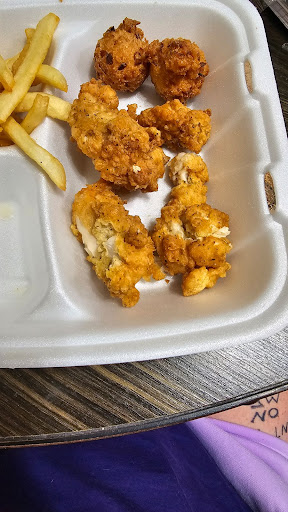 Read moreI've never heard of this place before, but I've been craving Seafood so decided to try it while I was passing through. I'm from from louisiana, grew up less than an hour from the coast! I've Loved Seafood all my life, so I know good seafood when I taste it haha! I also don't give five stars often or lightly! I got the "sampler platter" or whatever it's called. Some of the stuff on it was average, definitely nothing to complain about. Like the Mac and cheese, stuffed crab, and the fries. But were they REALLY blew me away was with the fish and the hushpuppies!!! The hushpuppies were absolutely spot-on, perfectly seasoned, warm and crispy on the outside, soft fluffy and moist on the inside! And the batter on that fried fish, talked about an explosion of flavor!! I've never had a piece of fish from a restaurant that was seasoned so well!! It caught me so off guard I literally said OMG out loud when I took the first bite!!! Absolutely DELICIOUS, I would recommend it...