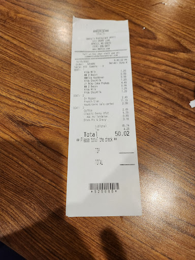 Read moreThis location could HANDS DOWN beat "The people of WalMart". Our 50 yr old white waiter had a gruff voice & spoke a vernacular making you think he was from the hood. All while serving mostly older people he kept calling them "Brutha" . "Whatchu need, Brutha?"...really? 50 yr old talking to a 70 yr old couple? Left tables waiting & waiting while he constantly talked at tge same tables...even tho we told him we had to get my elderly Mother to a Dr appt. The only time he acknowledged us is when we stood to leave...(after 20-25 min wait to get the check from him, asking twice). And really? A bald head with a tiny round patch at the base of his skull..working at Dennys in Arnold MO. Too funny. Wait staff is always aweful here. Completely different world in South County. FOOD: always aweful. Only go there because my love for my elderly Mother overrides me own desire for good food. Son had NACHOS..looked like someone had already ate them...NOTHING..at all like menu pics & slopped onto platter. Chicken Broccoli Rice skillet wasnt horrible, just dry. Other son liked the Double cheeseburger with a side of some sort of balls...lol. potato balls with bacon. Really liked them. The older lady usually at the register is VERY nice but she gets overwhelmed/anxious when they get busy and kinda chases her tail. Poor lady. Its managers fault, they should be watching for that kind of stuff so people arent waiting extremely long times to be seated while anyone that walks up to pay for thier meal gets helped first. This last visit we had 9....yes, NINE people go thru checkout before she came over and seated us. If it hadnt been for my sweet Momma....it wpuldve gotteb a little ugly up in there. (As our waiter would've said..."up in...