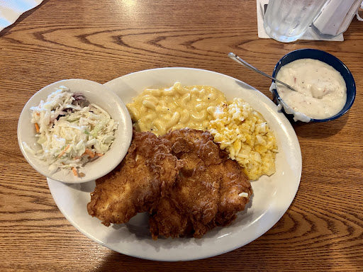 Read moreI have always wondered what the hype was about the Cracker Barrel was.. I have not grown up in the States.. so most of these places are new to me.. I have seen a lot of references to them in TV shows and Programs.. So finally I had the opportunity to visit one.. Well interesting it is an old time country type store that you can purchase items that are unusal.. and lots of Christmas stocking fillers and gifts for friends and family.. and yourself if so inclined... Some prices are a bit high.. and others reasonable.. so get at own risk.. Then there is the restaurant section. . Very much old style decor plenty of dust gathering objects and paraphernalia.. Service was good.. waitresses responsive and friendly.. Food offerings was old style American restaurant food.. Steak and fish available with sides of country style cooking.. everything was simple and tasty.. no Mexican or other foreign influence as one would find in most restaurants lately. Just good ol country food.. I would have liked to picture some of the foods.. however they would need to work on their presentation skills.. most of my sides just merged with each other.. did not look good but it was tasty.. fresh and hot.. The fried livers and fried catfish was perfect.. so those I can recommend.. I believe Sam Elliot would recommend the steak... reasonably priced.....
