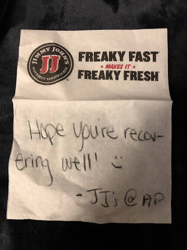 Run of the mill Jimmy John’s. Nothing spectacular about this one, but found nothing bad either. The 5 stars aren’t in comparison to a $25-$50 plate a meal place, but rather in comparison as to what you would hope and expect for, and if you received it. It’s a good sandwich shop to try if you’ve never been to one. Very good sandwiches and bread. Kettle chips are good too. If you’ve been to one, and have had a good experience, then I’ve found this place to live up to what you’d expect and want to find. It’s worth a stop regardless on if it will be your first time trying one, or if you’ve had experience at others and want to know if you’ll receive the same good service and quality. If your experience is anything like ours, you can expect it...