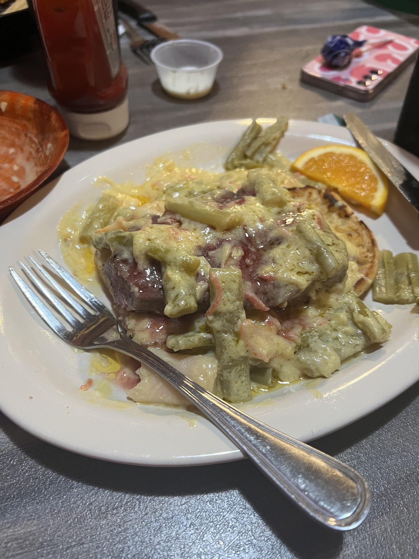 I love the family that owns this restaurant and have great past experiences here, but recently my experiences haven’t been the same. Prices went up, which I completely understand in our current economy, but also food quality has went down. We recently ate here and waited over an hour for our food, which I expect in the Lakes area on a Saturday night. I ordered a $30 beef Oscar and could not believe what I was given. I took one bite and gagged. I am not a picky person and will eat mostly anything, and this is the first time I have ever had an experience like this. The hollandaise sauce was watered down and tasted like asparagus water, there were ginormous chunks of imitation crab meat instead of it being shredded up, and chopped up ends (no heads at all) of asparagus that were so woody I couldn’t even bite into them. It was also very cold. I asked her if I could send it back and she asked me if I wanted to try to scrape the sauce off of my steak and box the steak up to take home, to which I replied no thank you. She then gave me my bill and charged me for the meal. I told her I literally couldn’t even eat a bite of it so felt I shouldn’t have to pay for it. She brought it back to the cook who was the shift manager for the night and the cook said that there was nothing they could do because the asparagus comes in a FROZEN BAG. For a $30 meal, I feel like I should be getting fresh asparagus that is not cooked into the hollandaise sauce. They eventually decided to not charge me but it took them over 30 minutes to come to that decision. My daughter loved the chicken strips and fries though, so if you eat here, maybe keep it simple instead of choosing a...