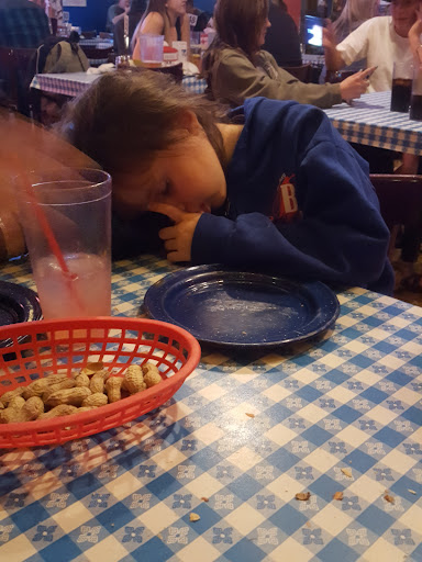 Besides the peanut-covered floor, the rest of the establishment is also sad in the atmosphere category. Ceiling is low, which gives a claustrophobic basement feel, and some of the furniture is simply worn out. Alaskan decor is nice, though.