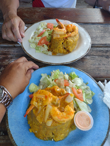 El lugar es tranquilo y chévere. Es de fácil acceso. Intentamos comer a fuera pero habían demasiadas moscas. Entramos y solo tienen una mesa pequeña (tengo niños) lo demás eran mesas altas. Gracias a Dios el lugar estaba vacío. El servicio y el tiempo de espera de la comida fue excelente, pero su sabor no tanto. El único que se disfrutó la comida fue mi papá (carne frita con tostones). Mi esposo pidió chicharrones de pollo y realmente eran pequeños trozos de pollo empanados, no lo que se conocen por chicharrones. En mi caso pedí una pechuga rellena de churrasco y lo que me entregaron fue una pechuga rellena de beefsteak. Y de sabor no estaba tan buena. Solo me comí dos pedazos. Honestamente me decepcioné esta vez, pues no es la primera vez que voy... pero en la vez anterior pedimos mofongo. Espero que les sirva...