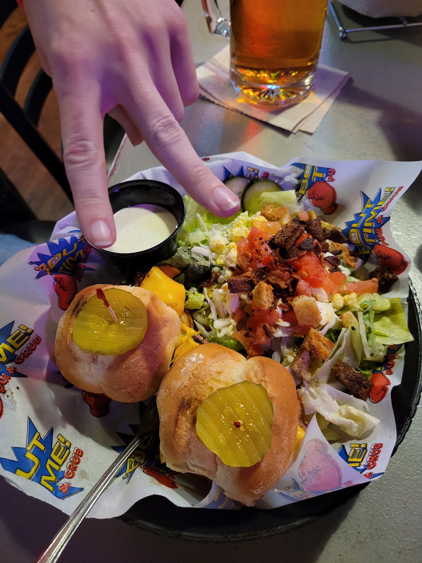 Restrooms are consistently filthy (strong odor, no paper towels), the floors and counters are sticky, and the place feels generally unclean. On a recent Friday night during a football game, there was only one staff member working for more than 25 patrons, service was understandably slow and the bar looked neglected.
