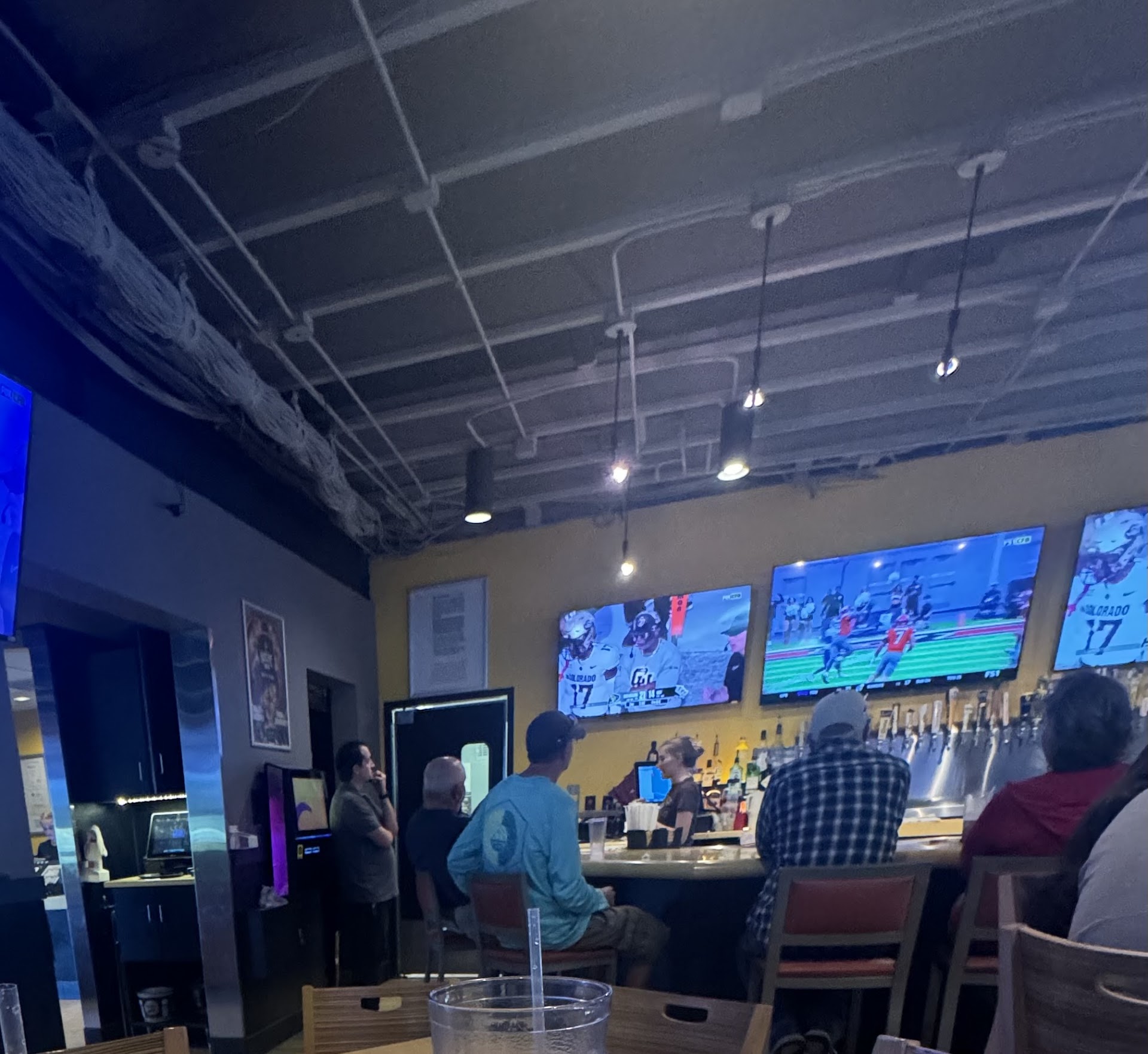 Read moreThe food is good. The drinks are good. The service is lethargic and uninterested in being there apparently (at times). But the biggest problem is the satellite television system I suppose. Every Sunday that we've been there this season, we requested they put a particular game on, and it usually takes a half hour to an hour for the manager to figure out how to program the game. They have about 50 TVs but they only usually have three or four games on. In other words, most of the televisions are all showing the same game, or chess or something. Sometimes they can't even put three different games across their 50 TVs. Last Sunday they could only show two of the 3 afternoon games.