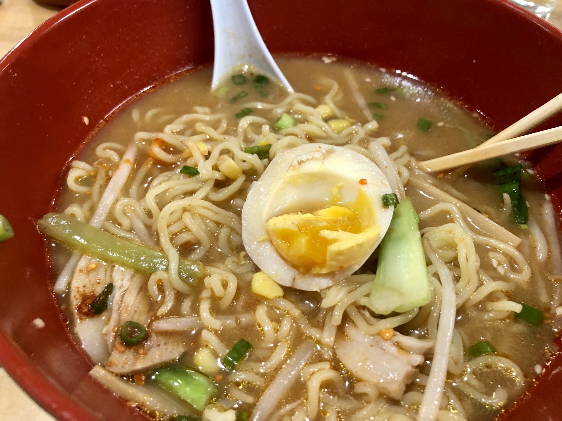 My beef bowl was very simple: rice underneath marinated beef with onions. It could use more juice from the beef, so I added some soy sauce, pickled ginger, and chili pepper powder. The added flavor to this dish enhanced my eating experience, because it was just enough heat for me to enjoyed the dish.