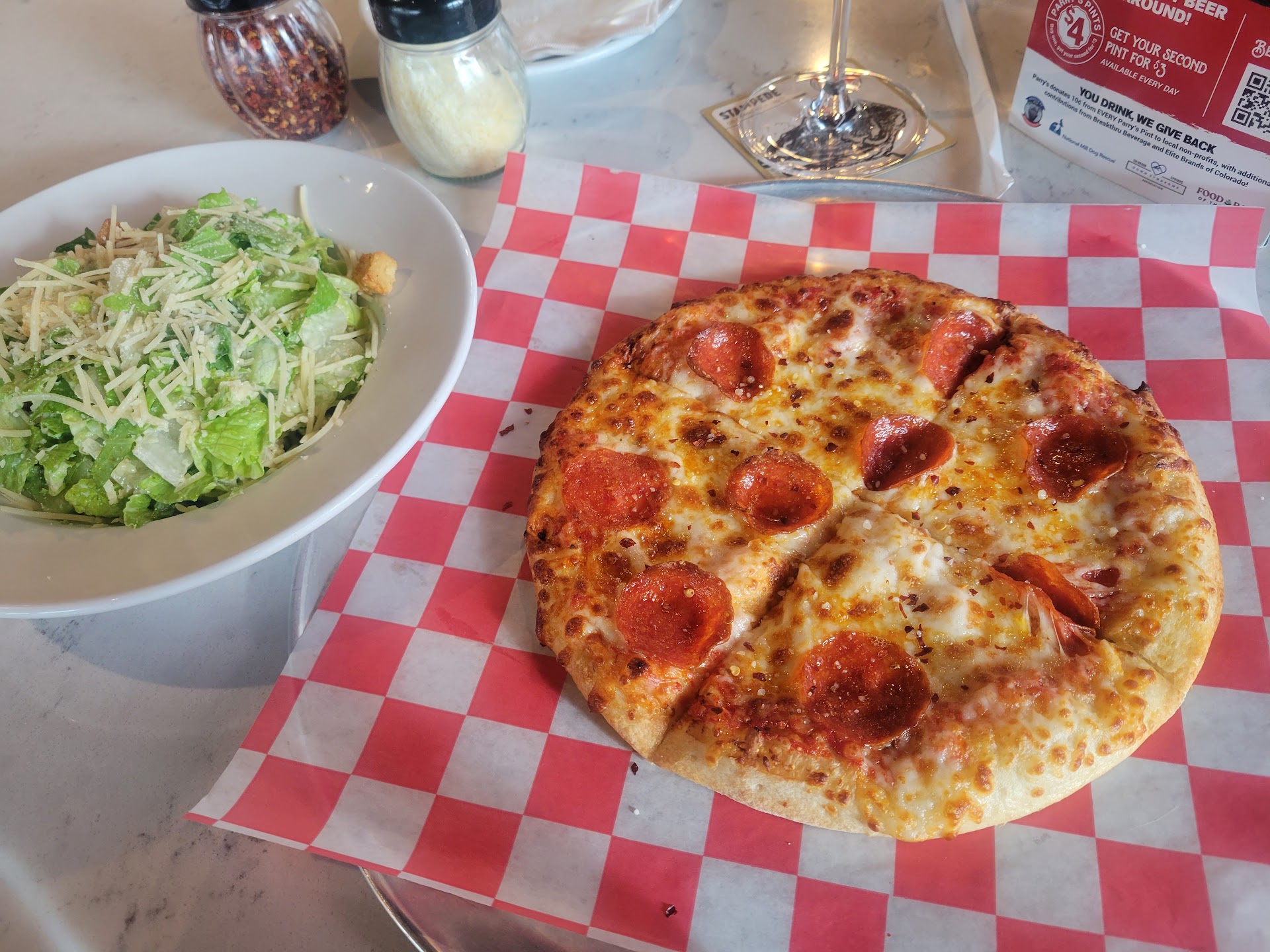 The drinks were okay. Not special. Overpriced. We received the bar drinks before the fountain. the 2lb margarita mug for a pizza place is dumb. Pint glasses guys. No waters offered or given to the alcohol drinkers and since we never saw our server for the entire meal once one drink was done, that’s all you’re having. Forget refills on fountain too, didn’t happen. Can’t ask about the food. Can’t get anything added, no server.