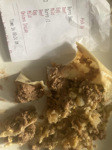 First review: I always order the same thing - BEEF and EGG Burritos. And 90% of the time they give me BEAN and POTATO. I buy the Smothered Deluxed and the $3 dollar burritos. Usually always a $15 order or more because I have to drive out of the way to eat here. It's impossible to check the contents of a burrito until you get home and unwrap and eat it so you have to trust them. DON'T! Included is a photo with my receipt and the BEAN AND POTATO contents of my burrito. All the burritos I ordered were BEEF and EGG. I am allergic to BEANS!! So, after once again having to throw away $15 I will never return to this place again. They did manage to read the onions and get those in. But how you read BEEF AND EGG as BEAN AND POTATO IS BEYOND COMPREHENSION. I hadn't gone for months to see if they sorted out their issues and I just went for the first time and they SCREWED ME OVER AGAIN. I tried to call on the phone so maybe I can let someone know that they continue to screw up but they either hang up or the call goes to a fax. So, it's still a real Clown Show, managed by a CLOWN, over there at Arvada Santiagos and I won't return. If you are getting your orders right then you're lucky or perhaps they care about some people's orders more than others.Came here off an on for 8 years and they got 2 orders right in 8 years. Only 2. Now, thanks to this Santiagos, I won't go to another one anywhere and will warn friends and family to stay away. Thanks for stealing my money and ripping a customer off again...