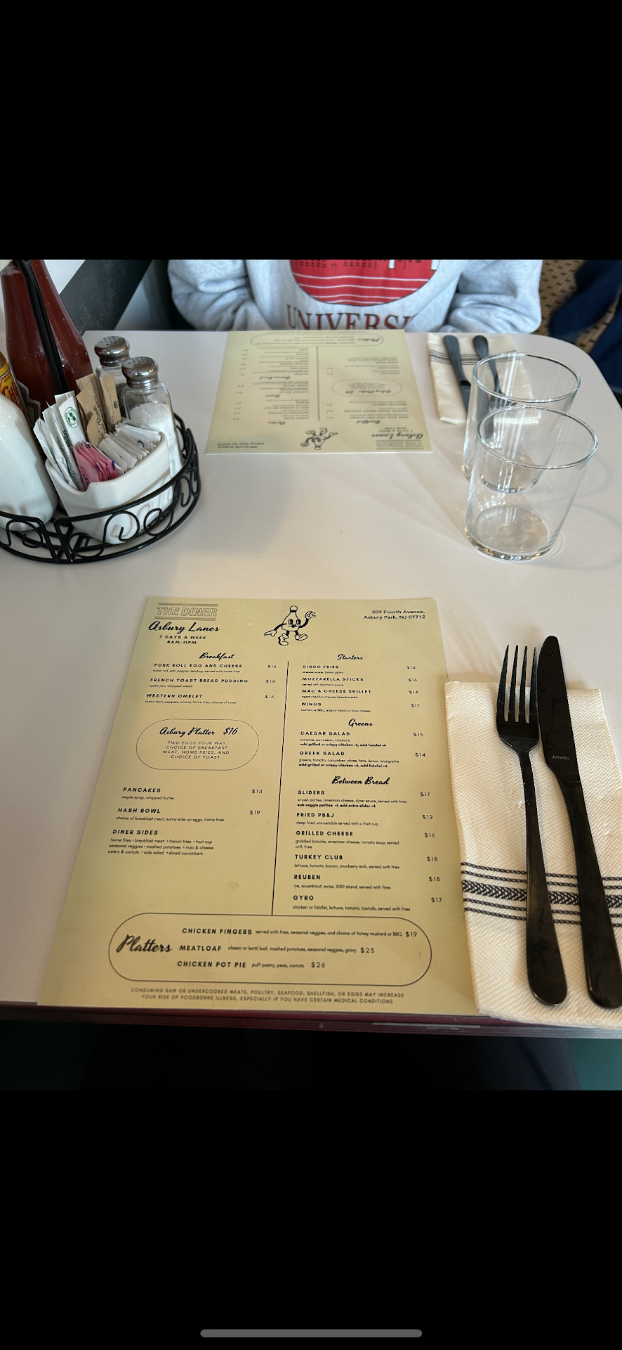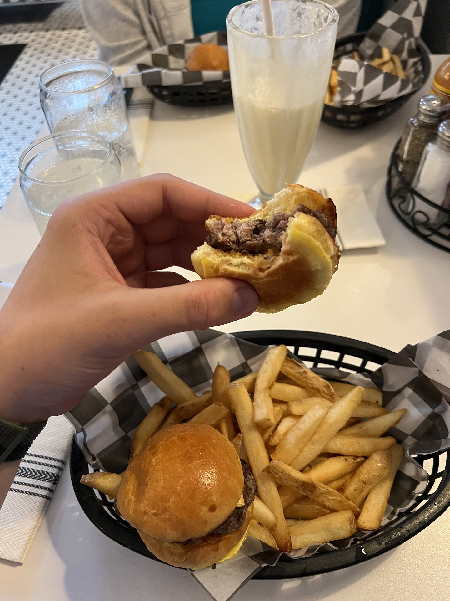 Read moreUnfortunately, this was not the experience I was expecting. I made a reservation for my boyfriend and I, and was super excited at first! We went in and loved the old timey atmosphere and went right for a malt milkshake (which was for $12). We ordered sliders thinking they were going to be decent sized ones we saw in pictures online. We got them and they were the size of dollar coins (and for about $17 for 2 sliders)! I ordered bacon jam on the side. When I reminded the waitress to grab it for me after bringing our food out, she said they’re still making the burger topping. I then sat for 15 minutes waiting for my bacon jam and trying to get her attention (we were the only table in there). She came over and asked if we were doing well. Clearly not since I had to wait 15 minutes for a burger topping letting my food get cold. She never checked on us after bringing the jam, never refilled waters. It was overall not the cozy, comfort diner experience I was hoping for. For 2 orders of TINY burgers and fries and one small milkshake, it was over $62! Unfortunately not worth it. Be careful when choosing; the diner and bowing alley are...