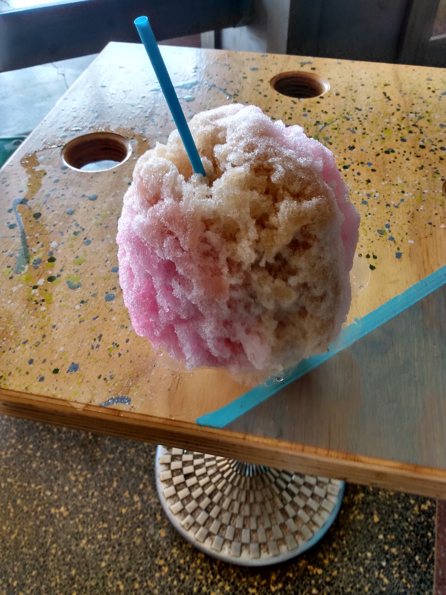 Shaved ice has beautiful texture. It was light, airy, and fluffy. The issue I had was that there was not enough syrup provided on the ice. I went back for more syrup and it still wasn't enough. My syrup was tasty but my friend got shaved ice as well and said her syrup tasted as if it surpassed the shelf life and was old.