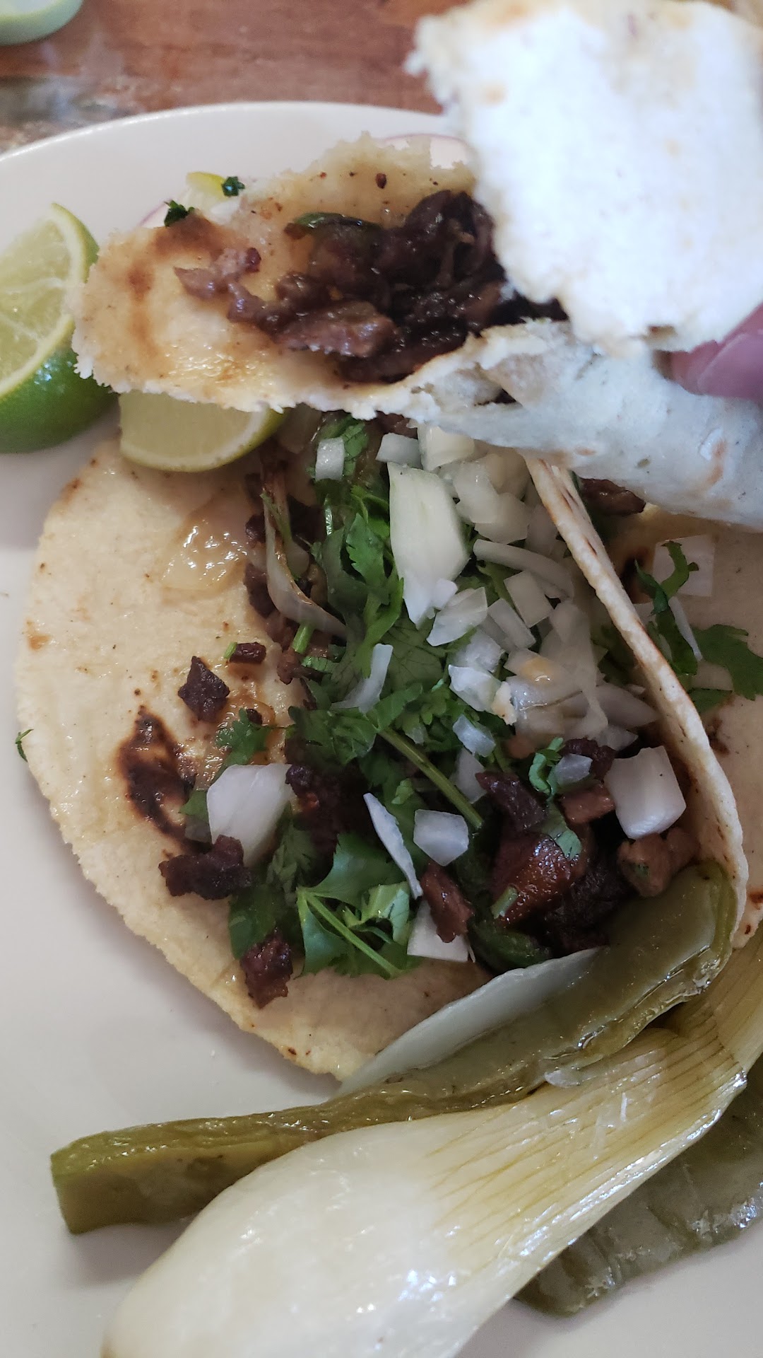 Read moreThe food was very good. The waitress was friendly and as attentive as she could be as she was the only server, busser, cashier . The food is made to order so it is a very long wait. In the future I would definitely BYOB and have drinks while waiting. We had chips, tomatillo salsa and a pico de gallo salsa, both were mild. Even the guacamole was very mild. One appetizer came out after our main course. The choriqueso was served very hot. It was not overly spicy, the seafood platter was an enigma. The whole thing was room temperature. There was cooked rice and cold shredded lettuce, tomato and radishes under the pile of less than warm seafood. I dont mind head on shrimp. There was a nice size crab underneath. Pork skin Tacos were good. I have never seen any restaurant anywhere that served any kind of pork skin . So we tried it. They were a little too greasy and chewy for me but, the food was so inexpensive that I didnt care that we only tasted them. Portio s were generous. Prices are more than reasonable. With the amount of seafood the platter should have been 2X the cost. We ordered 6 desserts to go that totaled $14 !! Flan, tres leches, and cupcakes. I would give 5 stars if the wait...
