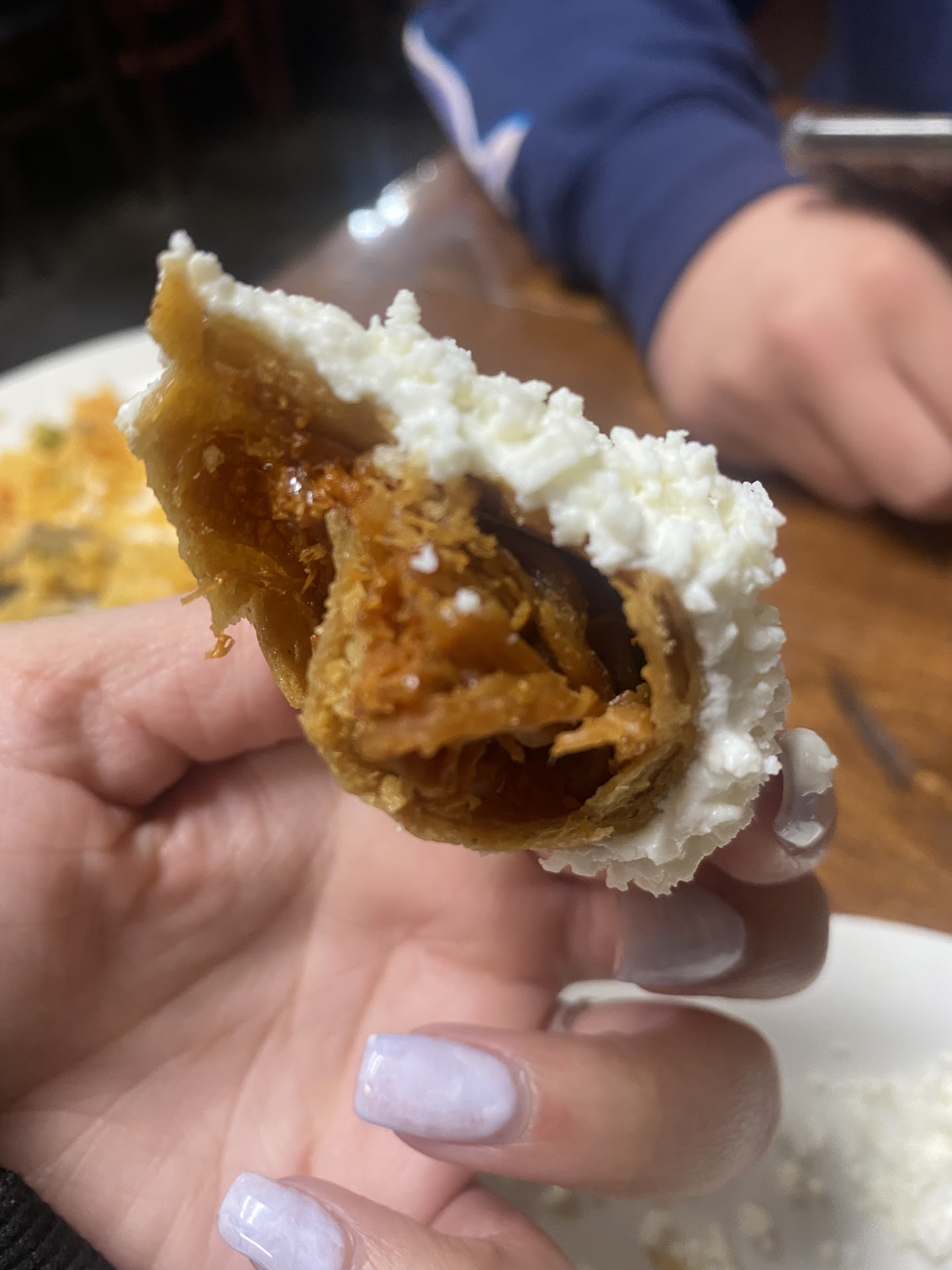 I ordered tacos dorado, which came with black beans, and rice. If you don't know, it's pretty much a taquito. I was all pumped up after the fundido and this dish changed my tone. Beans...good, solid beans. Not as good as bandido...but serviceable. Rice....ok didn't really stand out to me. It was soft and fluffy. The taquito was fried hard as hell and the chicken inside was the dry damn desert that I hate to visit.