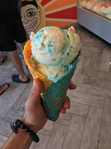 Read moreApparently they're semi-famous for these mega milkshake creations, but I just wanted a good ice cream cone and found it here. I had their birthday cake ("Happy Birthday To Me") ice cream and thought it was one of the better birthday cakes I've tried. Lots of pretty big cake chunks and the cake seemed like it actually would have been good cake on its own. The “small” is two scoops and they’re pretty generous! The waffle cone was a little hard, but I'd still get it again over a cake cone or bowl. They also have other fun stuff, like fudge, cookies, and ice cream waffle boats (which my dad got and enjoyed). They have a pretty large selection of flavours, but I found it hard to get a good look at everything while I was waiting in line with people standing in front of the freezer, and they wanted us to order as soon as we reached the counter, before we got a chance to see all the flavours up close, which was kind of stressful since I barely knew what all the options were when they were asking me (not very patiently)...