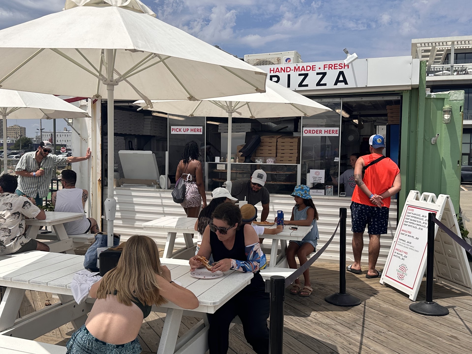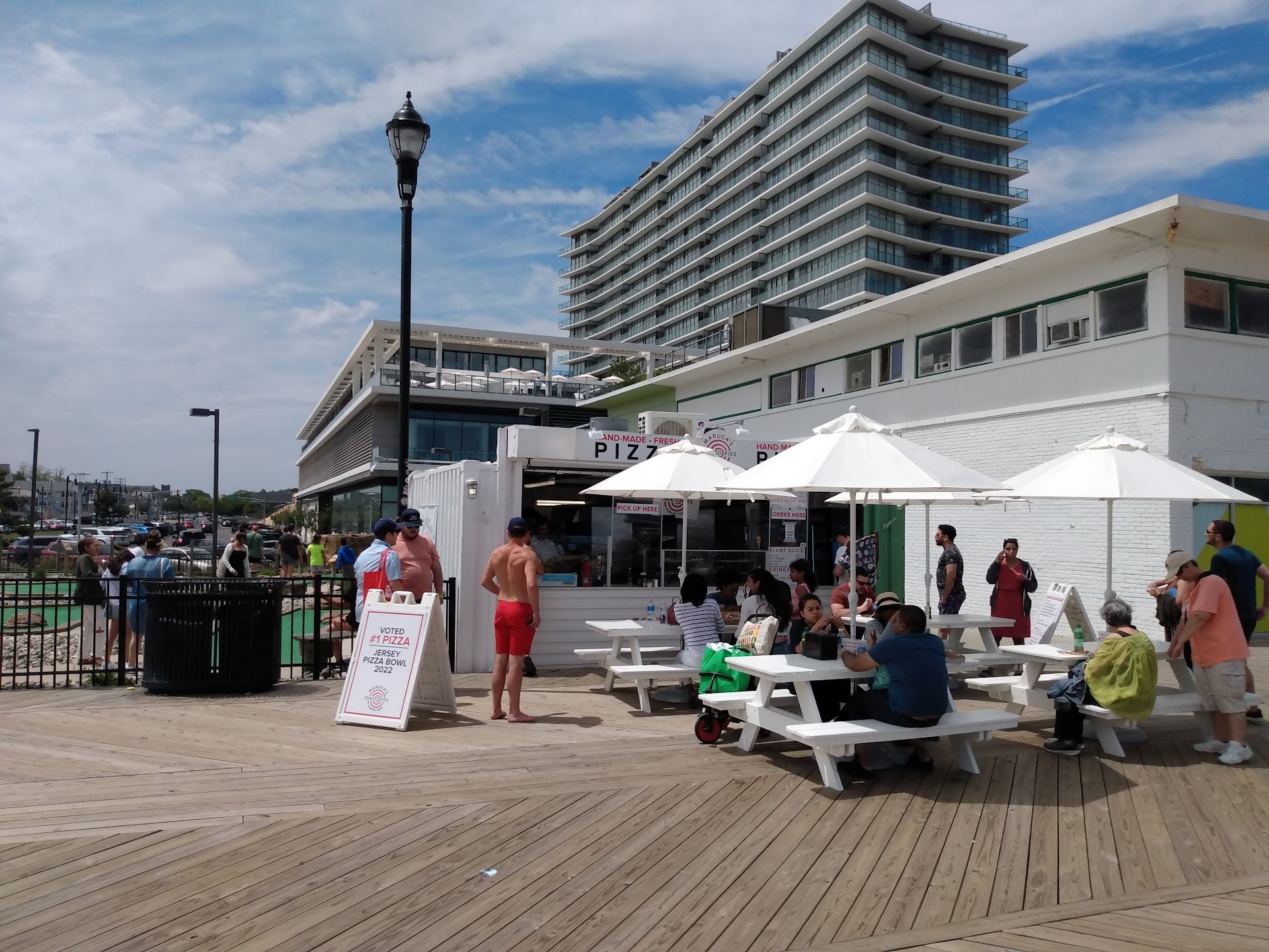 *Edit - I feel the need to make an edit on my review. I still think the pizza overall is good but I'm tired of waiting in a huge line for 15-20 min and then another 15-20 min to get a slice or two of pizza. Absolutely ridiculous. You wait all that time after ordering and you get basically cold slices. Why the wait then? I always see pies right there on the counter that slices can be grabbed from very quickly and easily. But for some reason there's always a long line and a long wait. It doesn't seem they have any type of management ever or anybody who's in charge just a bunch of teens high School / college kids who obviously have no idea had to do things efficiently. Yet after waiting in a long line to order to in turn wait another fifteen or more minutes for a slice they sure do push the tip. I agree with others the seaside heights location does a much better job. This place really needs to do something with having somebody there who is in charge and keeps things moving. People coming there want to grab a quick slice for themselves or their hungry kids. They don't want to wait 20 to 30 minutes for a slice or two. * Great pizza. Big slices. Limited seating but at least they have some tables which is nice. Other places have none. Line can be long because it's popular and they send every slice to do a turn in the oven so it can be a bit before you order and get your slice. Not big on when you pay it asks you for a tip before completing the transaction as many places do nowadays and the cashier points out the tip feature. You're literally taking my order and someone else is handing me a slice of pizza. Not a tipping situation. And yes I've worked in multiple food settings including pizzerias. People don't tip when getting a slice usually. I did have one person who said if you don't want to tip just hit no tip and because she said that I tipped her. I appreciated that. Nice option if you want something quick and relatively inexpensive compared to the other restaurants on...