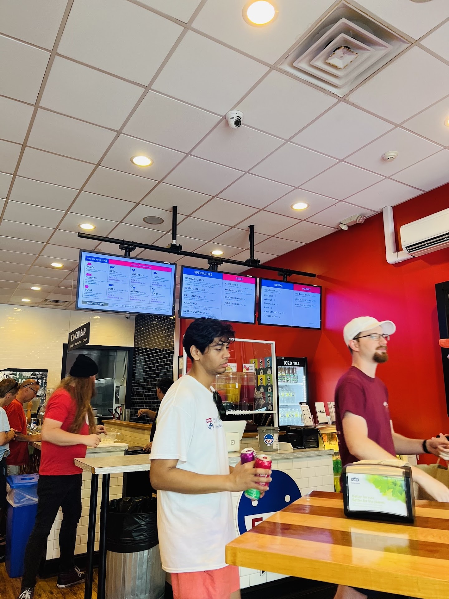 While we waited we realized there's a "pickle bar" in the back where you could help yourself with kimchi, daikon radish, and spicy cucumber. It's super appetizing and a significant part of the experience, so make sure you don't miss it! The order came after a 10-15 minute wait, a bit longer than expected. But the food was well packaged. The tacos were spot on with tasty Korean beef and fresh and colorful veggies. The burrito was exactly the same ingredients, except I added the kimchi rice which was the only negative: the rice was hard and I also realized I could have got the kimchi from the pickle bar without the $1 surcharge.