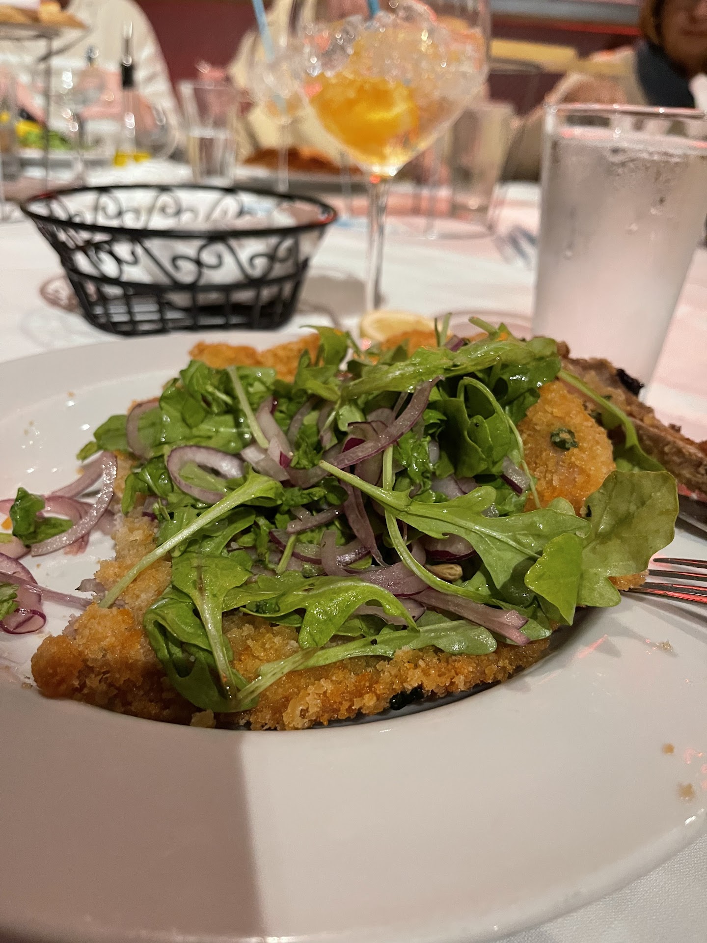 I went here as a fancy date with my boyfriend that ended up feeling like I was in a highschool cafeteria for adults. It must've been the room echoing the sound or even the bar that was across the smallish square area where we sat. We sat along the wall in front of the window where they had a long seat that covered the wall with a bunch of little tables for two. I emphasize small because for what we ended up getting it did not fit everything we ordered, which was only an appetizer, and our separate meals. We were seated next to this fake plant that made it seem like we were being hidden, mind you, my boyfriend and I don't look rich so we feel that the rest of what happened tonight was due to that. We took our time browsing the menu with our mouths watering, my boyfriend suggested the Melanzane Parmesan $18. Literally the best thing we have ever eaten!! The only thing about this dinner was the appetizer. Seasoned to perfection with delicious steamy bite every time. We tried to save it throughout the time we were waiting for our food which was about an hour or so, and not to mention fill up on the appetizer before the meal even presented itself. If the appetizer is amazing then we're in for a treat when it comes to the dinner, is what we thought the entire time we excitedly waited on our food. I ordered the fish chief special that day and it was not worth the $35 I paid for it. The fish was dry, the calamari was non-existent, a very small portion for $35 dollars. Granted the ingredients might have been expensive, but why sell something that tasted so bland and filler like. There was about 10% fish and 80% whatever the rest of my plate had on it. (I don't remember the ingredients, but I think it was squid ink, mixed with maybe some kind of bean? But that took up the rest of my plate and tasted like nothing.) I knew going into it I might not like it, but there were so many things they could've done to make it taste like food. The worst thing on the menu and the most expensive thing I ordered. Then my boyfriend ordered the ravioli, which was pretty okay.. Had this undescribable zang to it, but as a serving it was small. $16 But wait, I was charged for more.. At the beginning we had no idea what drinks they had until we found the drink menu tucked under the food one.. When I browsed over it, it all looked alcoholic, and since my boyfriend and I were going to be driving home afterwards we decided to pass. So the only thing we had to drink, was water. Which they would come around to refill, making this place seem more enjoyable. If I'm not mistaken I was charged about $3.50 per refill even if it was HALF FULL and I didn't ask for. Not to mention the fuzz and dirt in my boyfriend's water. The kicker is, on the receipt it doesn't tell you what you were charged for, except the total. If I knew I was being charged that much for half a glass of dirty water I wouldn't have gotten it. Now, that is the price if they didn't charge anything for the seemingly free bread they provided, but what do I know. This place is a rip off. They served salt but it didn't come out of the shaker, we tried two of them. No pepper. No place on the table for it to even go, our three plates were hanging off the table. A hole in the table cloth. Our waiter was nice and even tried to offer us a coffee because he could tell we were miserable, but who knows if that coffee was free or not. Not to mention an older couple was seated next to us and started talking about us. No shame in these people!! And when it came to getting out of there we asked for the boxes, but isn't it their job to fill it or at least offer? I watched this same nice gentleman walk to other tables with filled sealed boxes. Not to mention they were all very quiet when it came to speaking. We had to ask multiple times for anyone who talked to us to speak louder. The best part? There are seats upstairs, but not in use. The first floor was packed and people were waiting for seats when we left. Horrible place to eat, only about the money, and an appetizer shouldn't be the best part...