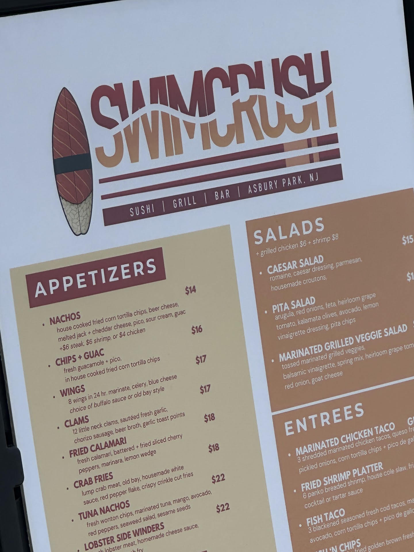 Read moreIn one word "Perfect". I did not expect this at all...I almost don't want to leave this review as I don't want this place to get too popular but I have to give this place credit! It is towards the end of the boardwalk (or the beginning depending on your perspective) and it was a pleasant breezy day when I saw Swimcrush. It is a crazy cool atmosphere with Baywatch on the televisions and of course lifeguard types hosting and serving. I stopped to see the menu items listed outside on the boardwalk easel thing and I was greeted by the manager and two other host cheerfully answering my question as to what was good...I already knew I wanted a burger and fries but everything sounded so tasty and at a great price I was interested in knowing some details. The manager Elizabeth was fantastic and she knew everything about the menu and what was good. I had a Smashburger and OMG it was tasteeeeee!!! Fried pickles, great tasing burger, french fries and great service. My waitress Bailey was quick to serve and attentive to my refills. I was not outside but directly inside an open door and with the Boardwalk, the breeze, and the beach right there I felt like I was in my own beachfront property enjoying an easy day of retirement (and I am not retired) but for a brief lunch meal I was enjoying life like I was. I even met Al the chef (I think that was his name) and complimented him on his Smashburger and although he was busy handling a few things with the manager, both he and Elizabeth still noticed and acknowledged me and my compliments. I mean I admit I was being EXTRA as I was bored and wanting to have conversations with everyone and not once did I feel unwelcome or as if I was a nuisance. I was not the only patron but they were well staffed enough to treat me like a VIP. Great service for a burger and fries. Extremely satisfied, full, and impressed. Five stars all around, thank you Bailey, thank you Chef Al, and thank you to the manager Elizabeth who with a great smile delivered all that was promised on the menu/sign before I even walked through the door and actually took a seat. I will definitely be coming back...Swimcrush, trust me, this is a great place with great food and service...just like I said in one...
