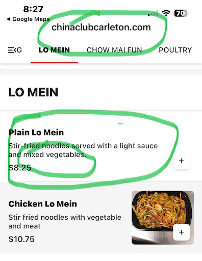 Ordered 2 dishes plus some Crab Rangoon. Only thing that was good was the Crab Rangoon. The Thai fried rice with chicken had very little flavor until I added a ton of soy sauce. The other was “plain low mein” which on the menu states it comes with mixed vegetables however there wasn’t a single vegetable in the container. Called to question this and was told I was wrong and the I got what I ordered however after trying to explain the menu was wrong online they told me I wasn’t using their menu. This is crazy since I was on the website for CHINA CLUB in Carleton MI. So how could I be using the wrong menu????