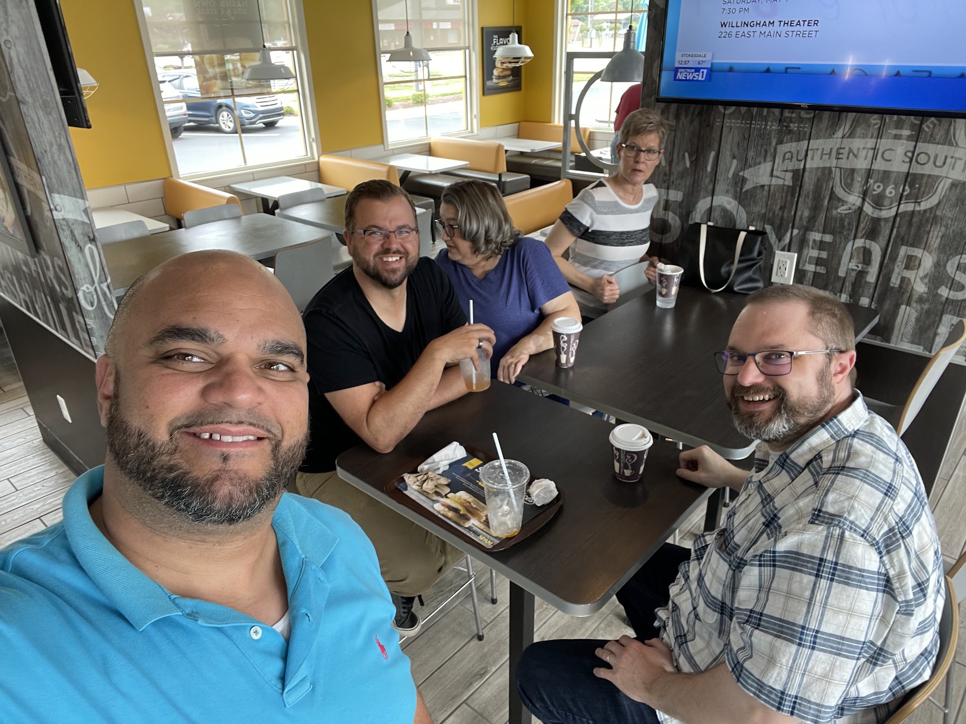 Absolutely phenomenal service!!! My family and I just moved to the area from Virginia, never experiencing a Biscuitville before. We spent the night in our new house the night before and this particular morning a tropical storm was coming through the area and it was pouring rain when I came in to get breakfast for my family while we waited for the moving truck to arrive. I had a large handful of bags and drinks to take to the car and the young man at the register offered to help me take everything to my car even though it was pouring out. I was caught a bit off guard at the generosity, but immediately accepted his help and we went to my car. I've never experienced such great customer service at a fast food establishment. And to top everything off the food has been great every time we've been since. Thanks for making me feel good about our decision to move to the area and have an awesome first impression of the people in our new town. It was a really pleasant experience...even with the...