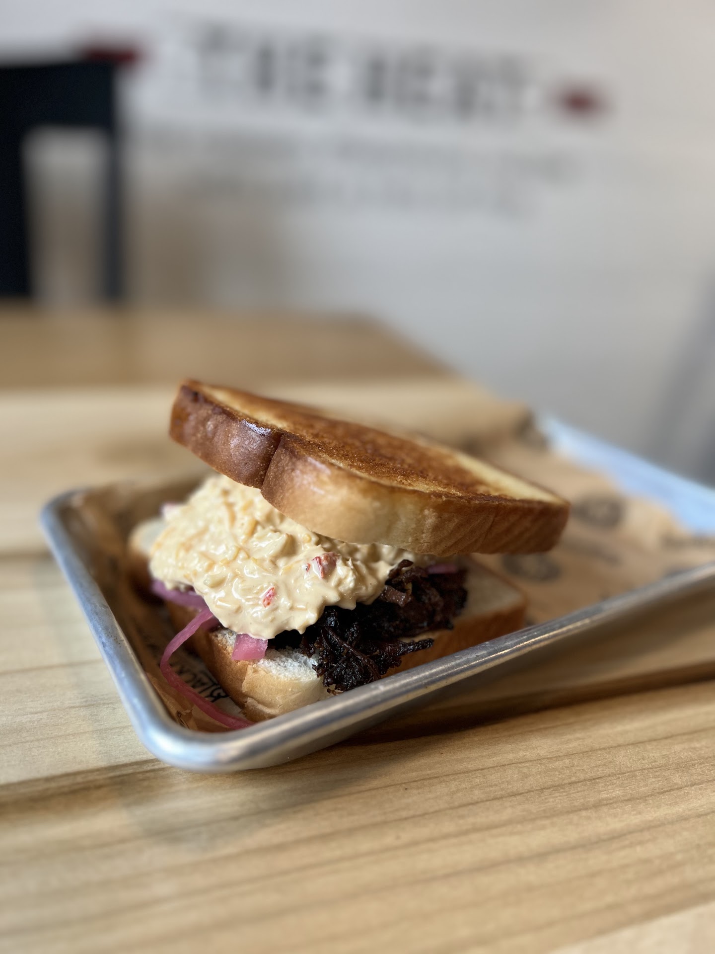 The ribs. I got one bone and even though I got all this food I wanted more ribs. The rub is astounding in pepper and spice just caked on these things man. Pulls clean of the bone but not all wet and soft like some ribs. Perfectly smoked and hold together well. Tons of flavor in the ribs.