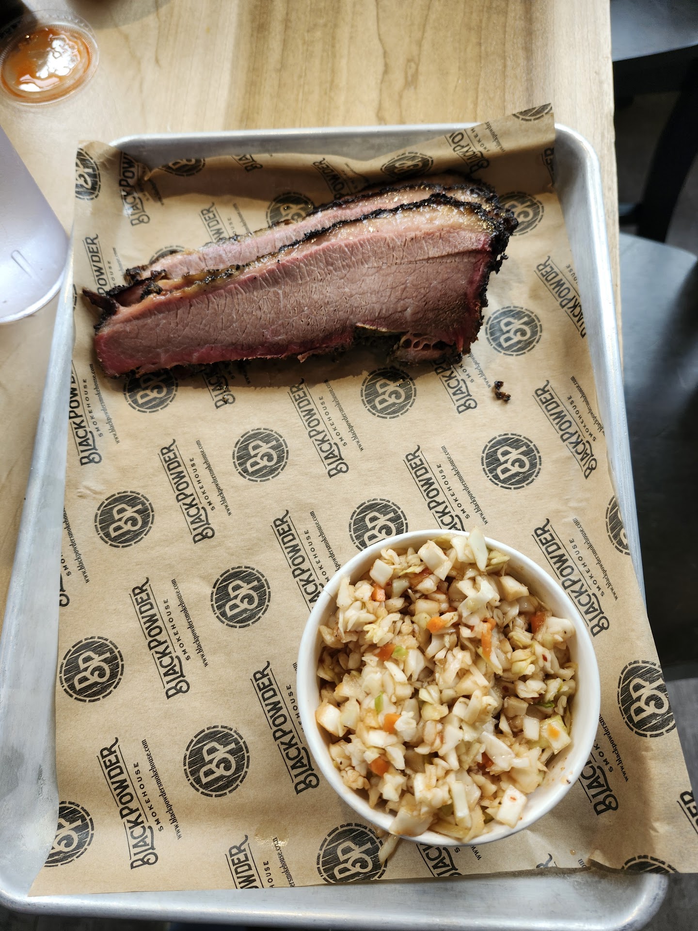 We've gotten Black Powder one other time not too long after they opened and while very expensive it was pretty good. The beans then weren't near as off tasting, and the mac was certainly cheesier/more flavorful. We got brisket, pork and turkey then too and I can tell you the turkey was WAY better then which is why we ordered it again. The brisket and pork had both been good also but the turkey had been our fav the first time. It was delicious, smokey, and very juicy. Sadly this is NOT the place to get BBQ in Asheboro, maybe the other location is better but I probably won't risk wasting the money to try. Heck maybe someone there was on holiday and I just...