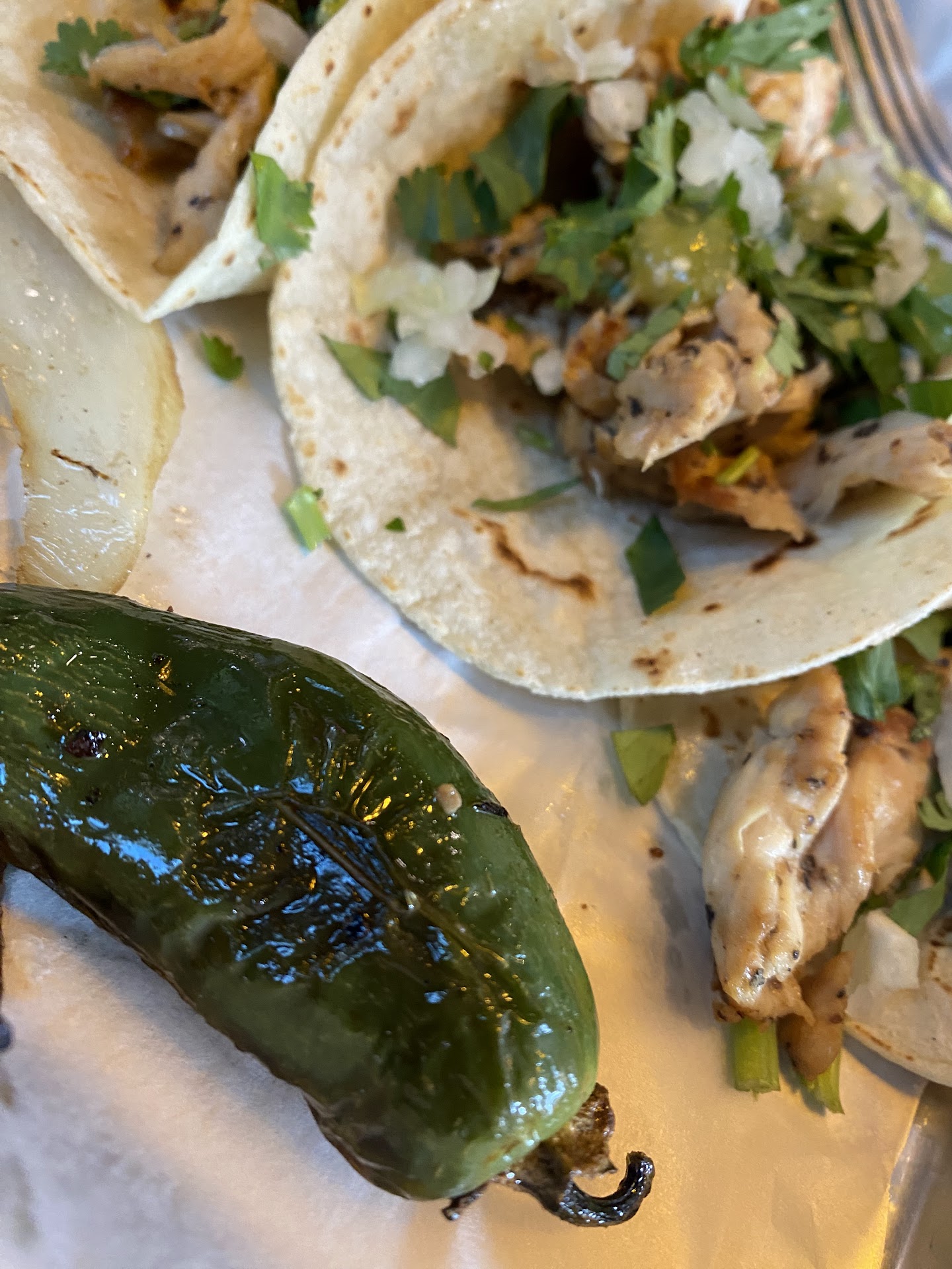 I ordered the enchiladas with cheese and grilled chicken on the side. I feel it needed more salt and maybe more chilis in the sauce. I felt something was missing but it wasn’t bad either. Not spicy at all. I like spicy and the waitress caught on to that without me saying so and brought me salsa picosa which I very much appreciated. So if you look for spicy ask for the orange one. I liked the flavor of the green one more but it wasn’t spicy to me. Probably to other people though. I recommend the green salsa as well. The portion size was very good. I will have leftovers for lunch today. My kids will too from their burritos haha. So we got full meals each from their serving size. So you get your money’s worth.