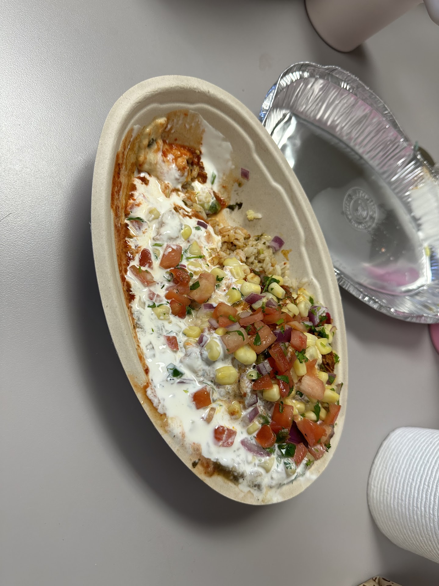 Read moreLong Post For being my first time of trying Chipotle thanks to our daughter buying us dinner I give this place a three...she ordered online an told me it be ready ten mins...I get there stood for three mins while no one greeted or acknowledged finally one lady that was making food to the left asks do u need something I said pick order for ** J then the young lady just kept working, then finally another young girl that was busy filling a container asked had I been helped I said yes thank you. So for the lack of customer service I said two..First time ever being there so I decided to look the place over....the food that was in the containers behind the glass well I just would say one word DRY ok more to say ...the beans an chicken looked like it had been there since opening this morning. Oh no honey...I told my daughter it was Soo kind an sweet of her to do dinner tonight for the family but next time we will walk in an ask for fresh food cause there is no reason that nothing looked edible at the time of 5:10pm ..so with not having fresh food an the shock of the look of the food I didn't get to look around at the rest of the building..was confused about the door being locked an only one to use..for me an my disability made it difficult..an the ramp to the parking lot was blocked by the cars parking so close to each other in a tiny lot..I did like what she picked out for us an would want it again but I want fresh food if paying that price an they advertise they have fresh ingredients so next walking in to look for the fresh or...