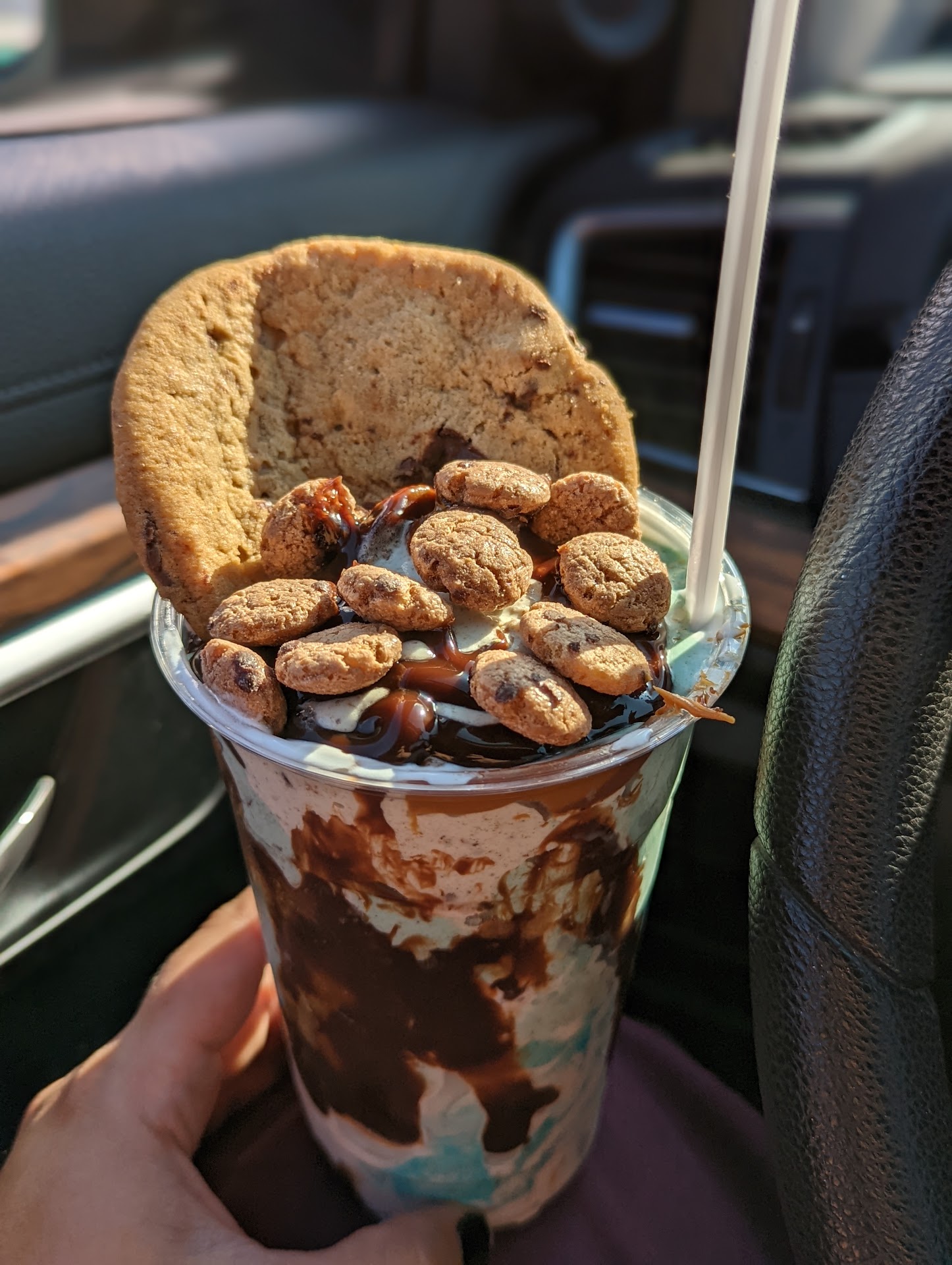 They also for the flavor blast - vanilla soft serve cone with a blast of flavor around the edges. I sampled the cherry and it was super good! Maybe I’d get that one with my fried brownies next...