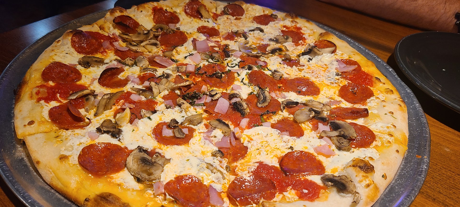 Read moreWent on cold rainey Friday night around 6pm. The pizza place was located in a plaza of other shops ,took my friend who is in a wheel chair. The waiting area very small, seated maybe 6 people near the door but no place to wait for us, except I found a corner next to table of diners who were really nice who did not mine us parked near thier table and water pitchers .We waited the 30 minutes until a table was ready .I made sure the people sitting at the table near us did not mind .We ordered the white cheese pizza. The oven baked crust was amazing .This is a family owned business for years with staff friendly people .There were only 2 bathrooms with 1 tolet in each one.waiting for one to open up presented It's own issues having to park next to more diners and enterence for the servers . The path to the bathroom was a little challenging but do able .bathrooms were very large and had handicap bars .Enjoyed the family feel of the restaurant. I would say if you are with anyone in a wheelchair or handicap it is a little challenging but go during nonbusy hours or make reservations . They do not have a beeper device to be able to wait in your car as an option .even if you were Not handicaped the waiting area is tiny. I would eat here again here with my friend provided we had a place reserved or...