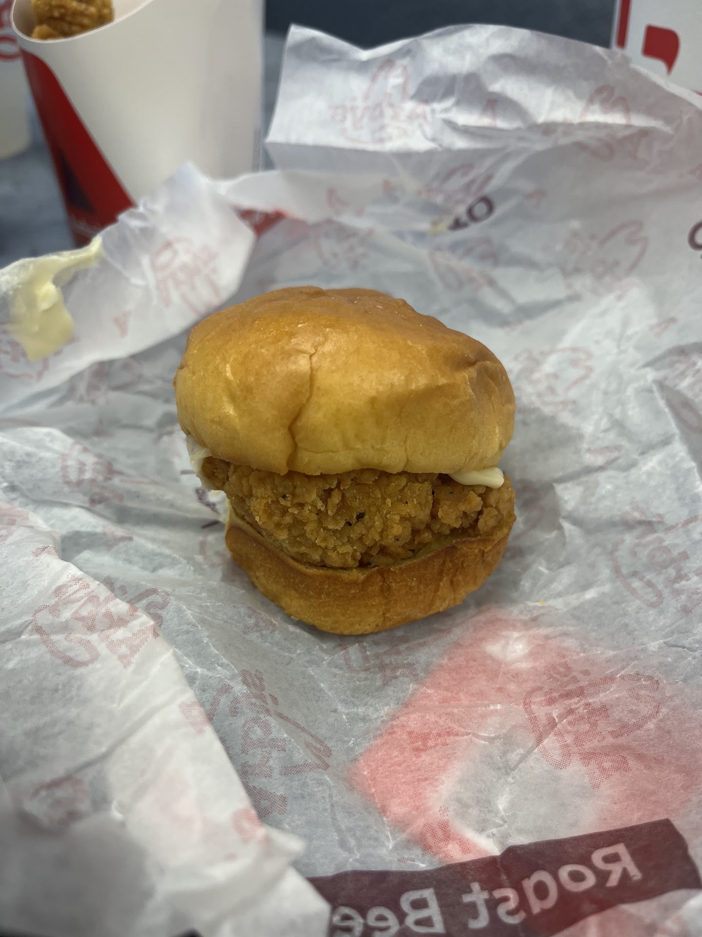 Read moreWe passed through Asheville on our way to Asheboro, and decided to get dinner here since it was fast food, and would be quick. We ordered on the app and I got one chicken slider and six mozzarella sticks. This location is right outside of the Biltmore Village, which is pretty cool. We placed the mobile order within minutes of arriving to the restaurant. I went to the restroom first, but the order was waiting for us when we arrived, so someone else in my party grabbed it. I think that the order might have been sitting there for a little bit, which is fine, but my mozzarella sticks were a little cold. The marinara sauce that comes with them is very watery, not the best sauce. The slider was something that was recommended to me. I did not realize it was a chicken tender with cheese in a roll, but it was pretty good! The people working were pretty nice, and the bathroom was clean enough. I definitely had a decent...