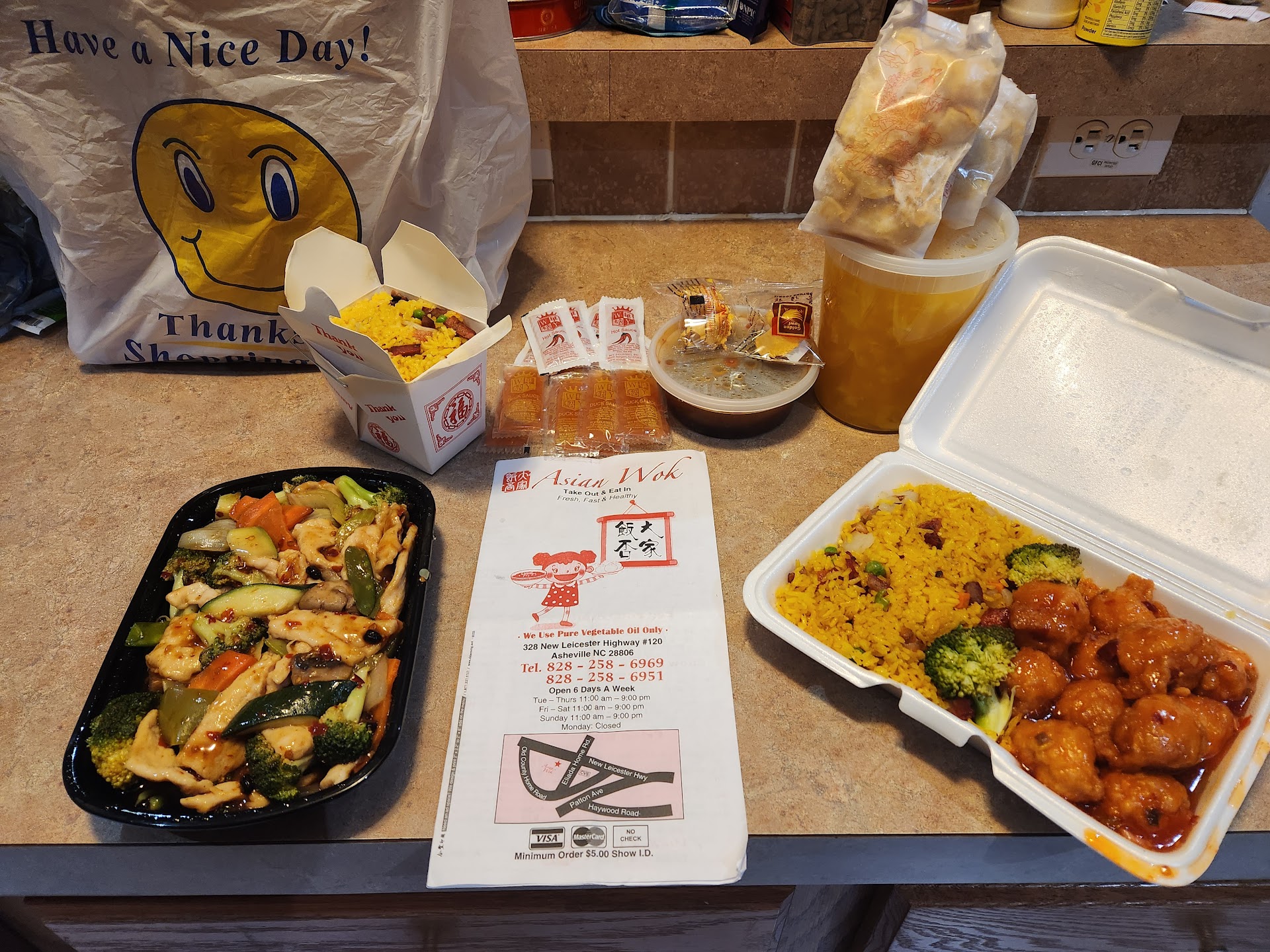 Asian Wok on New Leicester Hwy... is #1 on my list of affordable and tasty AF food spots. When the food is this good you gotta protect it, so it rides shotgun and buckled in. Their roast pork fried rice is our go to, and will change the minds of those that dont normally like yellow fried rice.