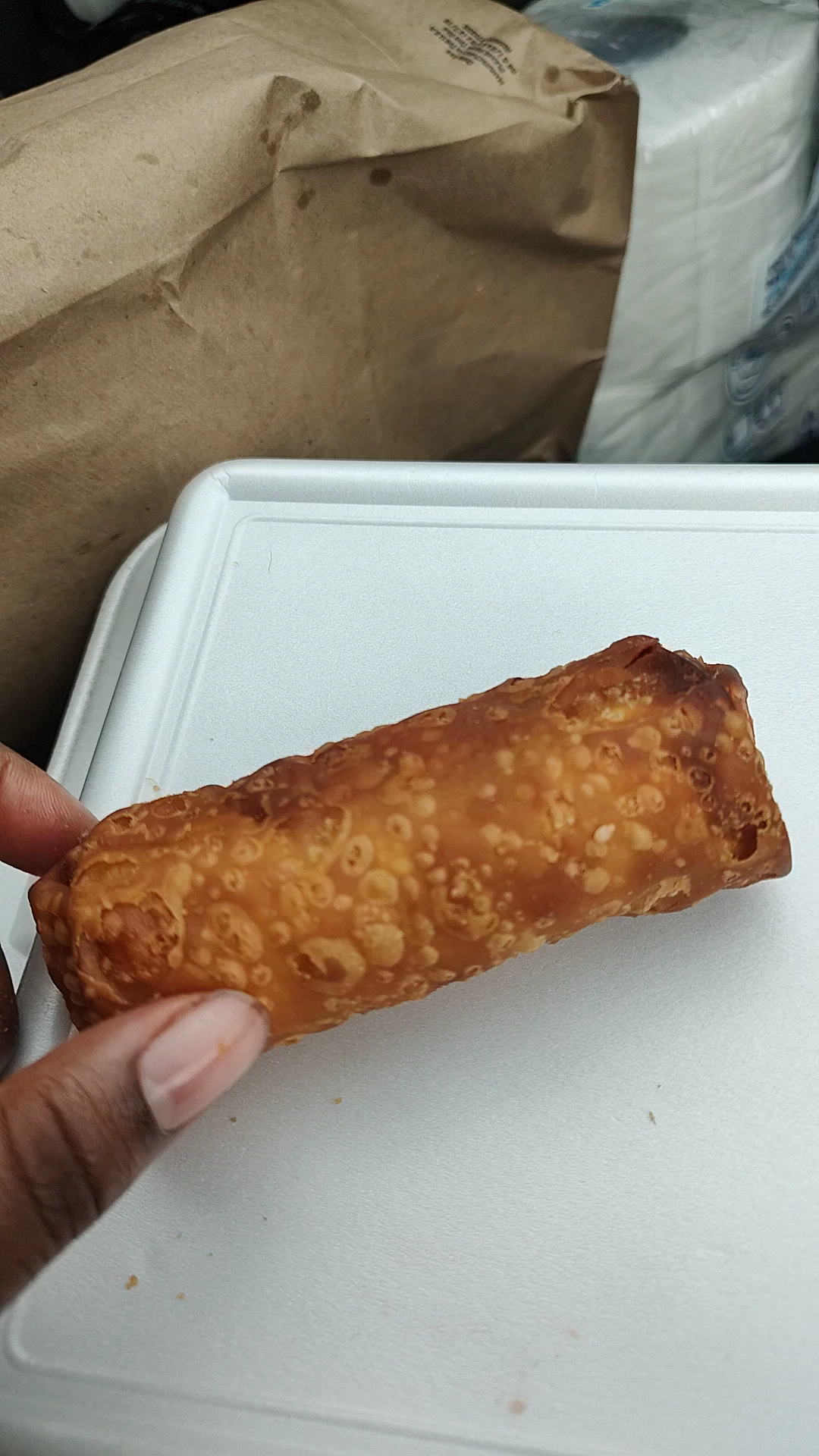 The pork egg roll had a great crisp. It was a little small for $2, but the filling was tasty. 5/5