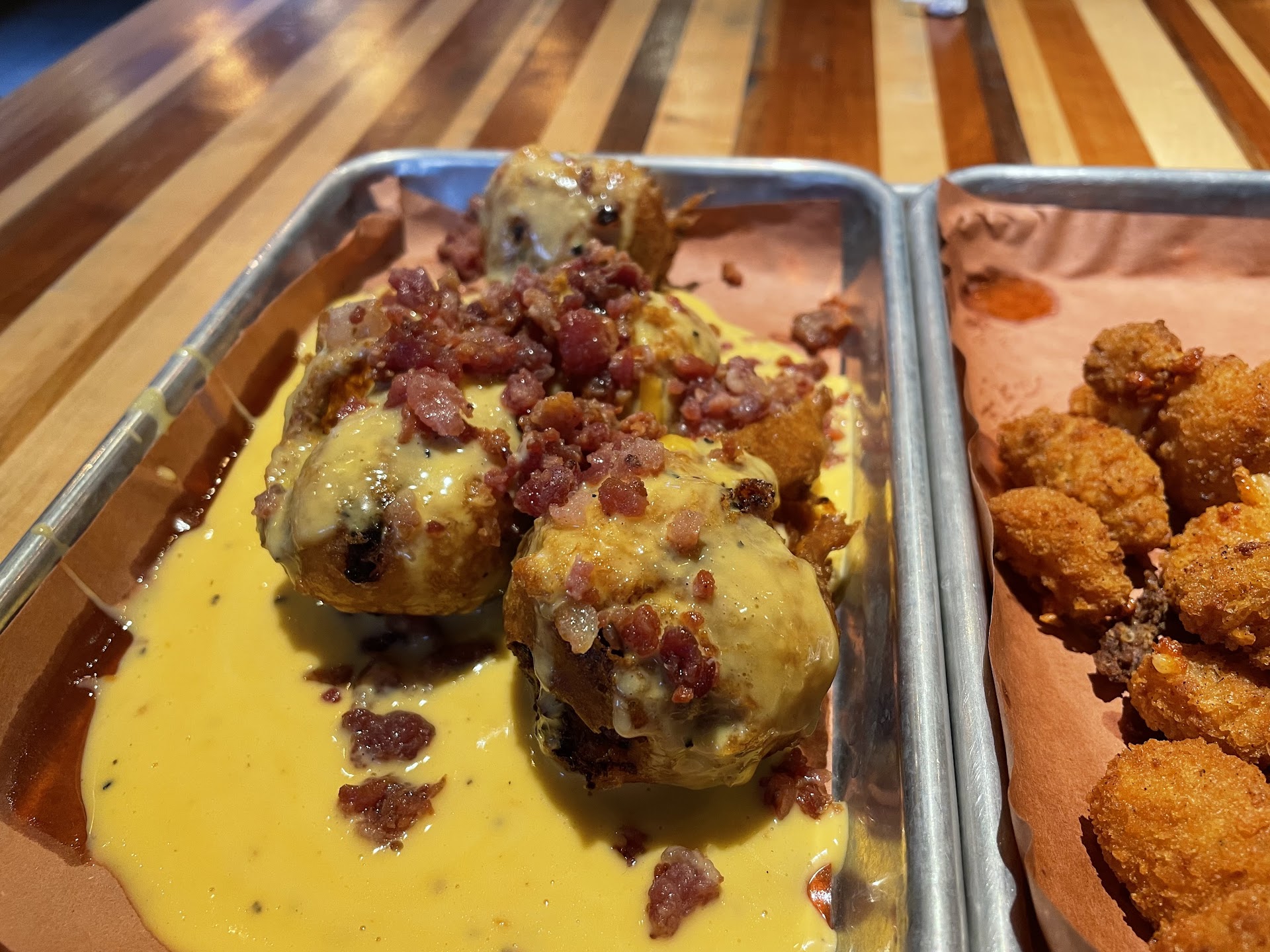 The bear balls were interesting. It was tasty and ridiculous - no regrets but I donāt think I quite got the flavors I was expecting. Itās a fried ball of something alright and then drowned in cheese and bacon.